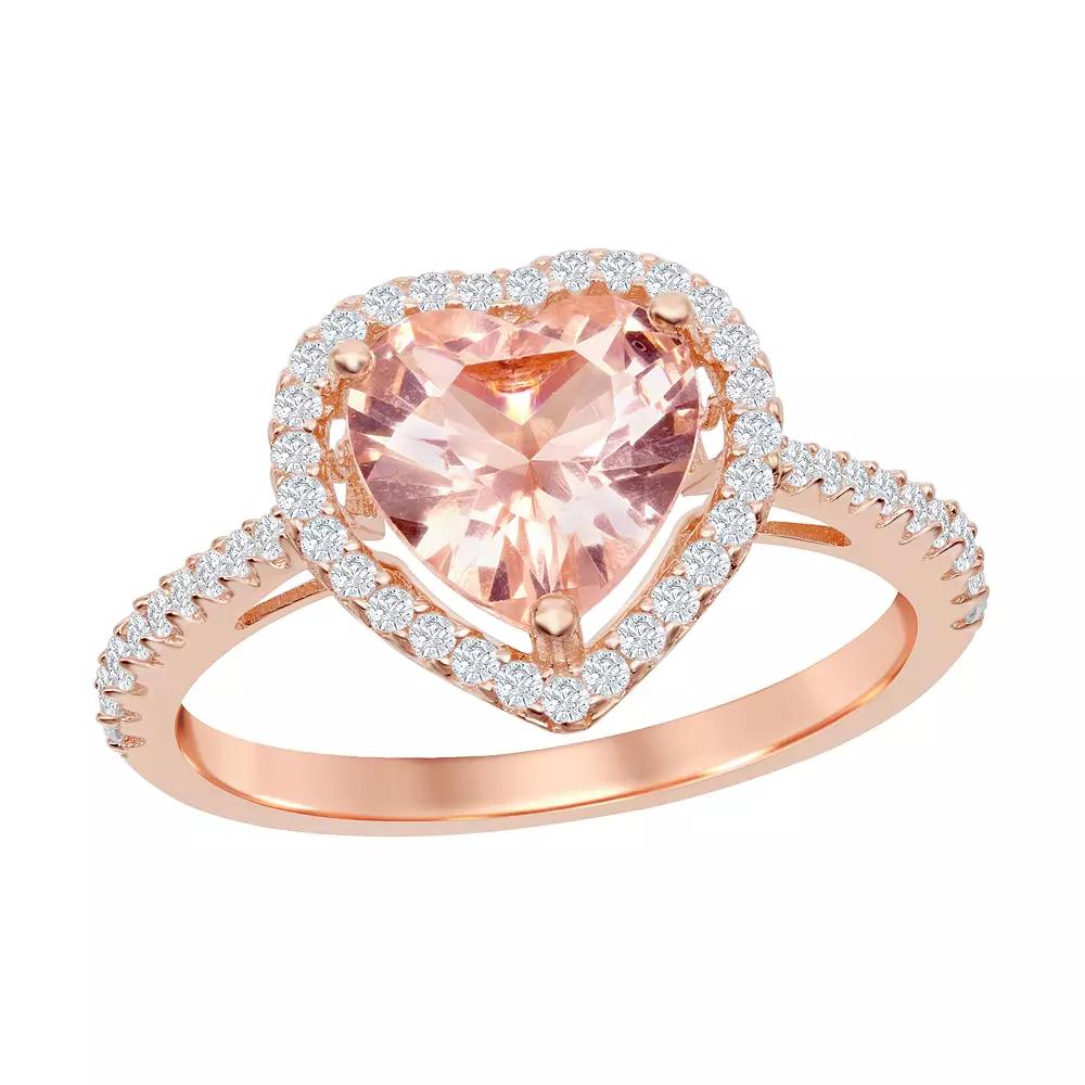 You'll love the impressive design of this beautiful morganite ring. You'll love the impressive design of this beautiful morganite ring. Packaging: boxed Metal: sterling silver Plating: sterling silver Finish: polished Additional details: nickel free Width: 0.5 inSTONE DETAILS Stone type: cubic zirconia Shape: round Setting: prong Gemstones may have been treated to enhance their appearance. Special care may be required. Size: 9. Color: Pink. Gender: female. Age Group: adult.