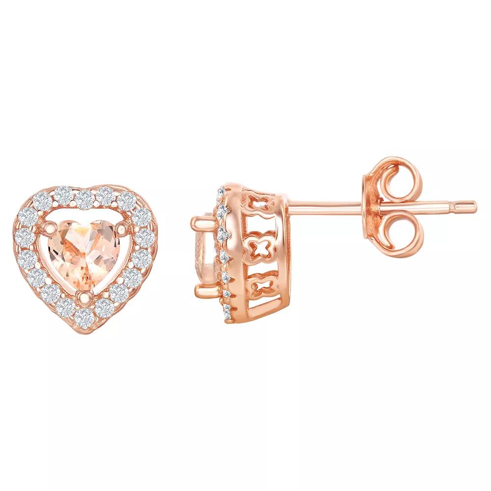 Youll love the impressive design of these beautiful heart-shaped earrings with morganite and cubic zirconia. Youll love the impressive design of these beautiful heart-shaped earrings with morganite and cubic zirconia. Backings: post Length: 0.6 in Packaging: boxed Metal: sterling silver Plating: 14k rose gold Finish: polished Additional details: nickel free Size: One Size. Color: Pink. Gender: female. Age Group: adult. Material: Gold Over Sterling.