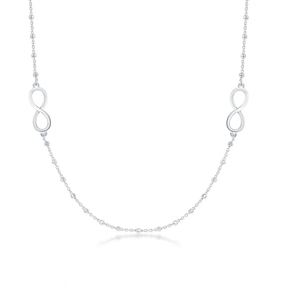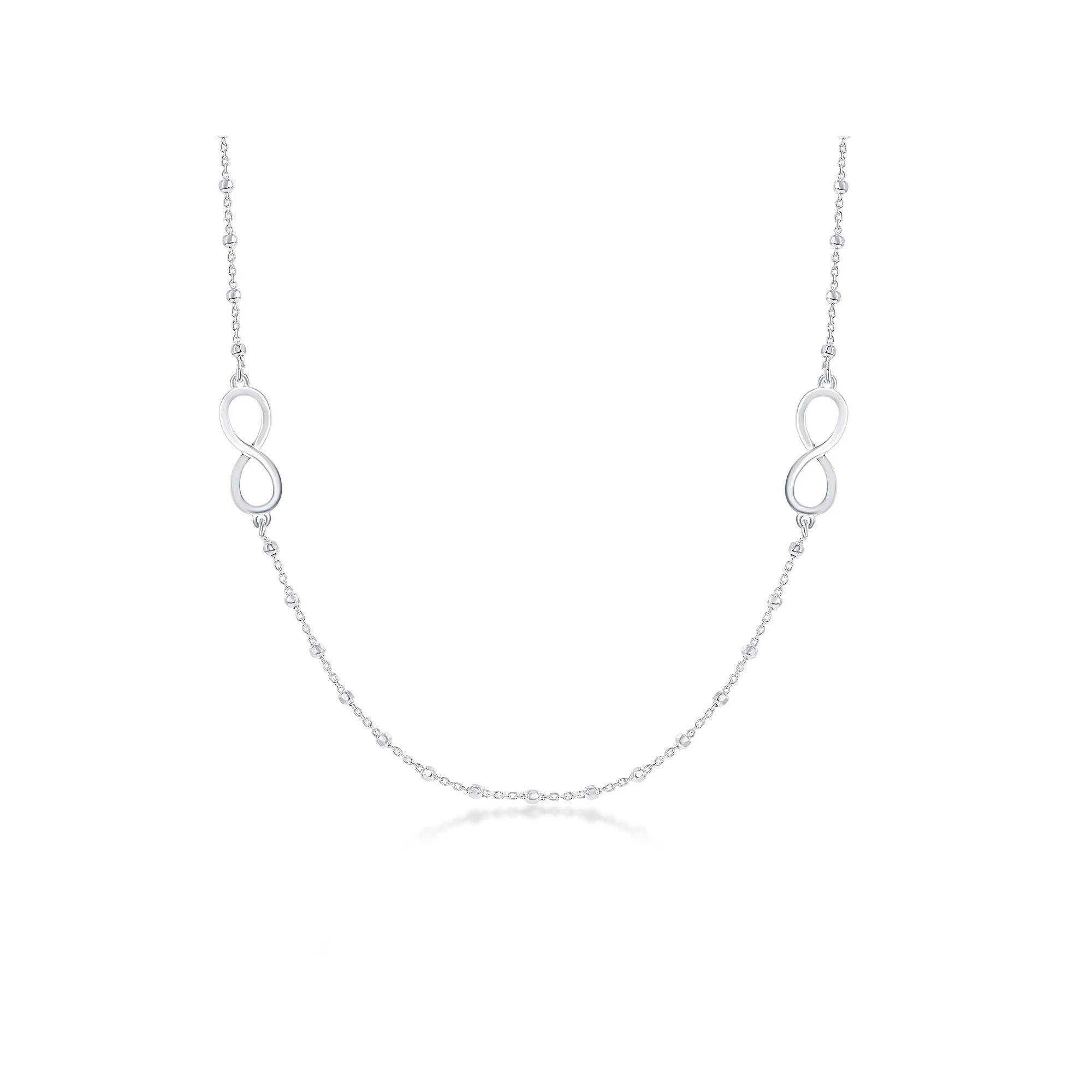 Add a touch of unending style to your look with this sterling silver infinity necklace. Add a touch of unending style to your look with this sterling silver infinity necklace. Necklace length: 18 in. with 2-in. extender Chain type: bead Metal: sterling silver Plating: rhodium Finish: polished Packaging: boxed Size: 30". Color: White. Gender: female. Age Group: adult.
