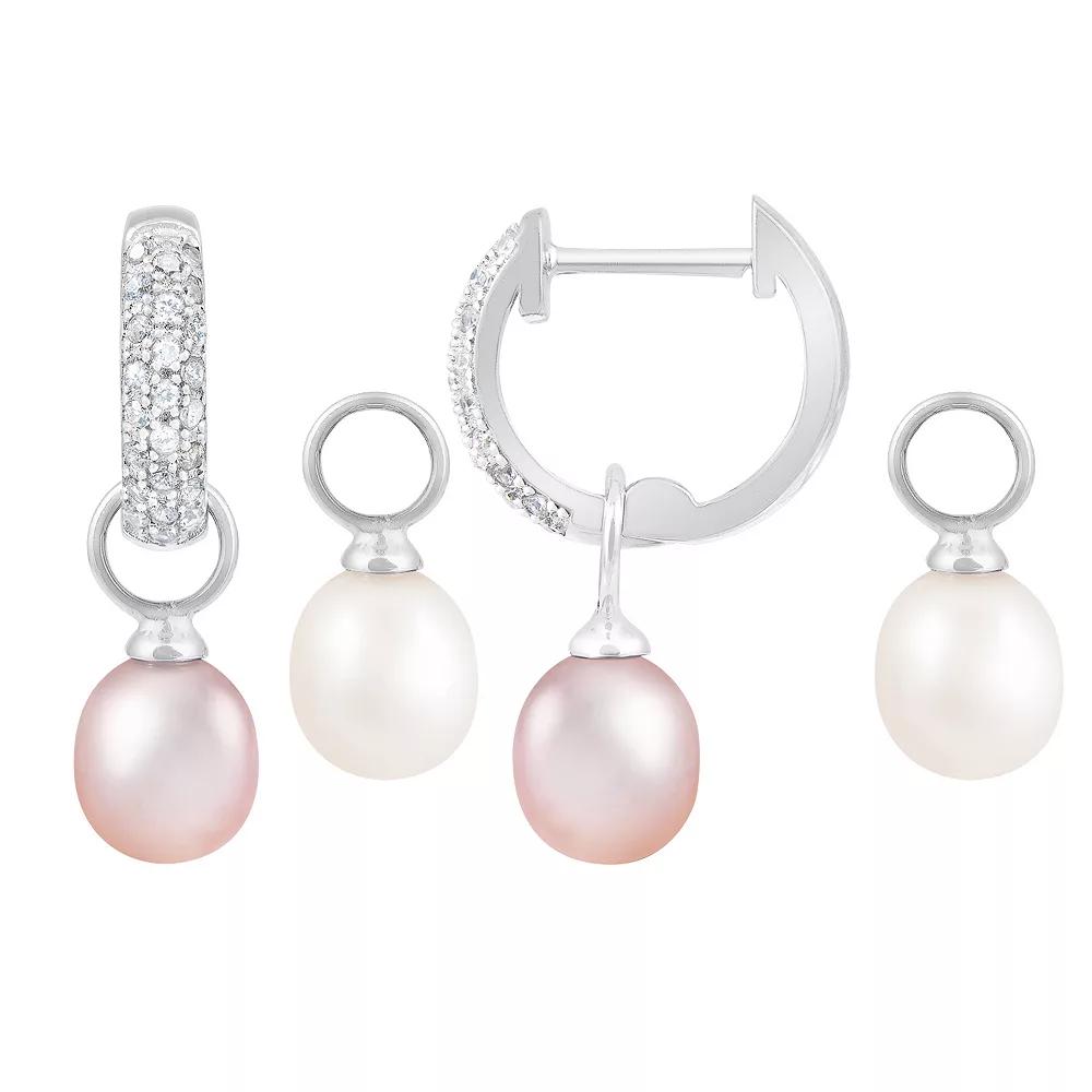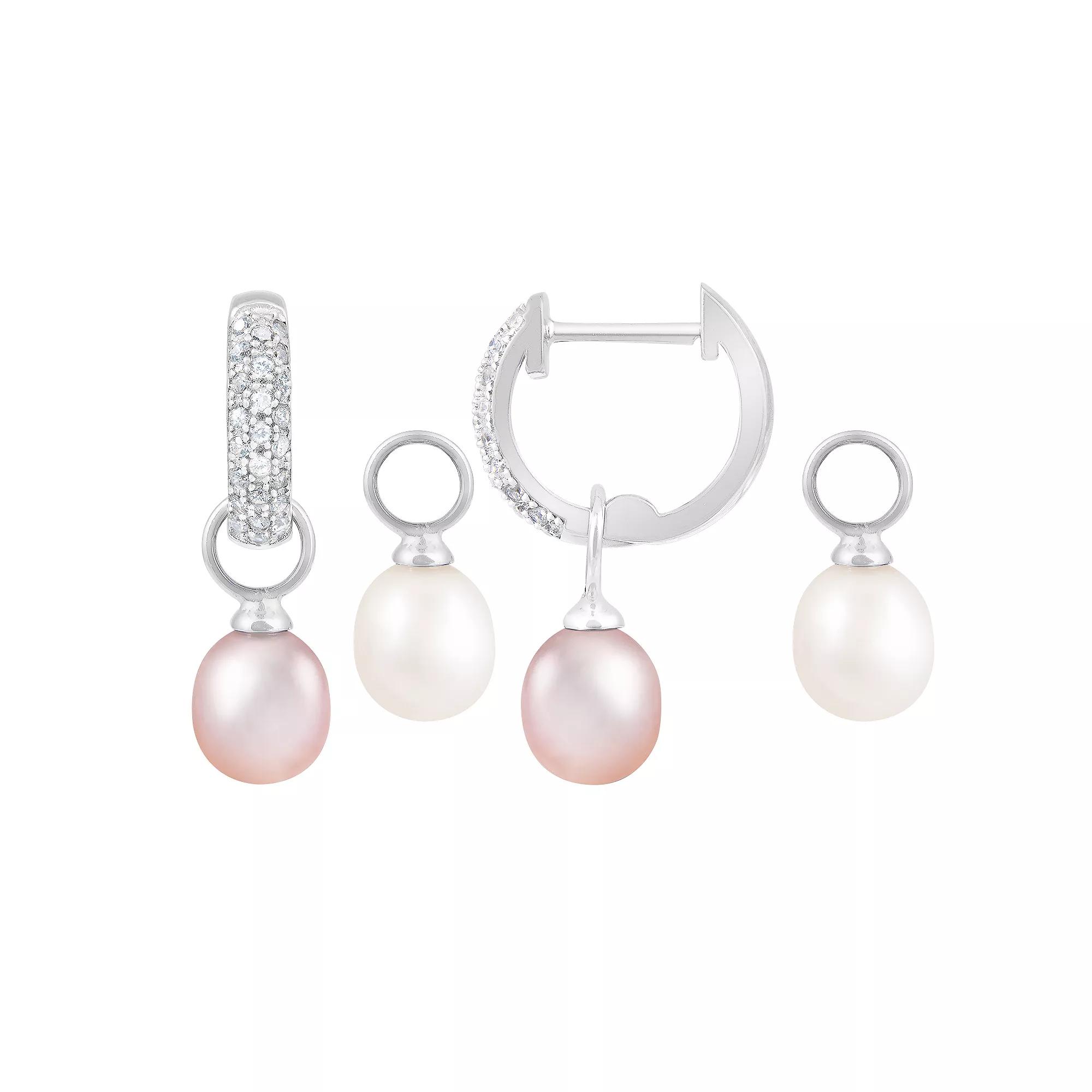 Complete with a pair of huggie hoops, and interchangeable pairs of dyed pink and white freshwater cultured pearl charms, this sterling silver earring set offers chic accessorizing options. Complete with a pair of huggie hoops, and interchangeable pairs of dyed pink and white freshwater cultured pearl charms, this sterling silver earring set offers chic accessorizing options. Length: 1.15 in. Closures: leverback Metal: sterling silver Plating: rhodium Finish: polished Packaging: boxedCULTURED PEARL DETAILS Type: freshwater Size: 8 mm - 9 mm Shape: drop Color: white, dyed pink Gemstones may have been treated to enhance their appearance. Special care may be required. Please visit our Gemstone Treatment & Special Care Guide for more information. Please note, due to the high value of this item, a signature may be required upon delivery. Size: One Size. Color: Multicolor. Gender: female. Age Group: adult.