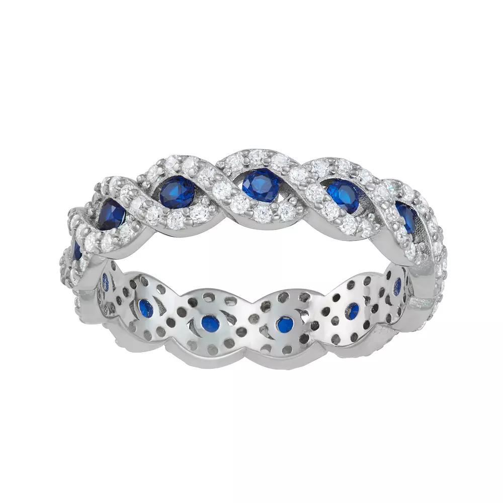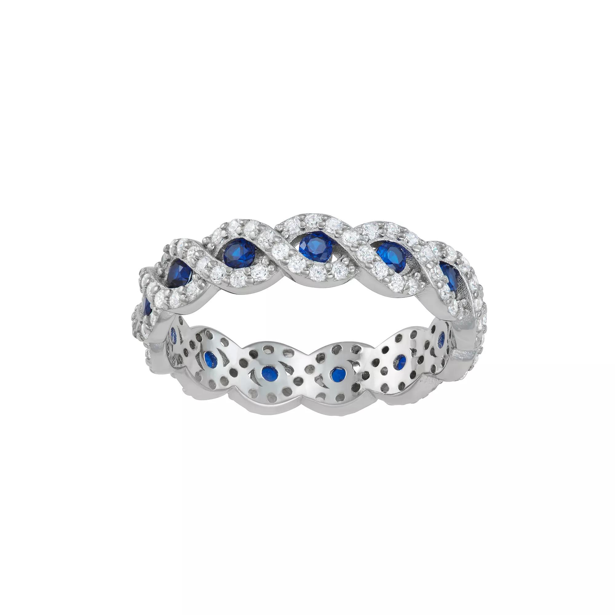 Add a touch of color to your elegant style with this lab-created blue spinel and cubic zirconia ring. Add a touch of color to your elegant style with this lab-created blue spinel and cubic zirconia ring. Nickel free Metal: sterling silver Packaging: boxed Plating: rhodium Width: 5 mm Finish: polishedSTONE DETAILS Stone type: cubic zirconia, lab-created blue spinel Total weight: 2 1/10 ct. Shape: round Setting: bezel, pave Gemstones may have been treated to enhance their appearance. Special care may be required. Please visit our Gemstone Treatment & Special Care Guide for more information. Size: 7. Gender: female. Age Group: adult.