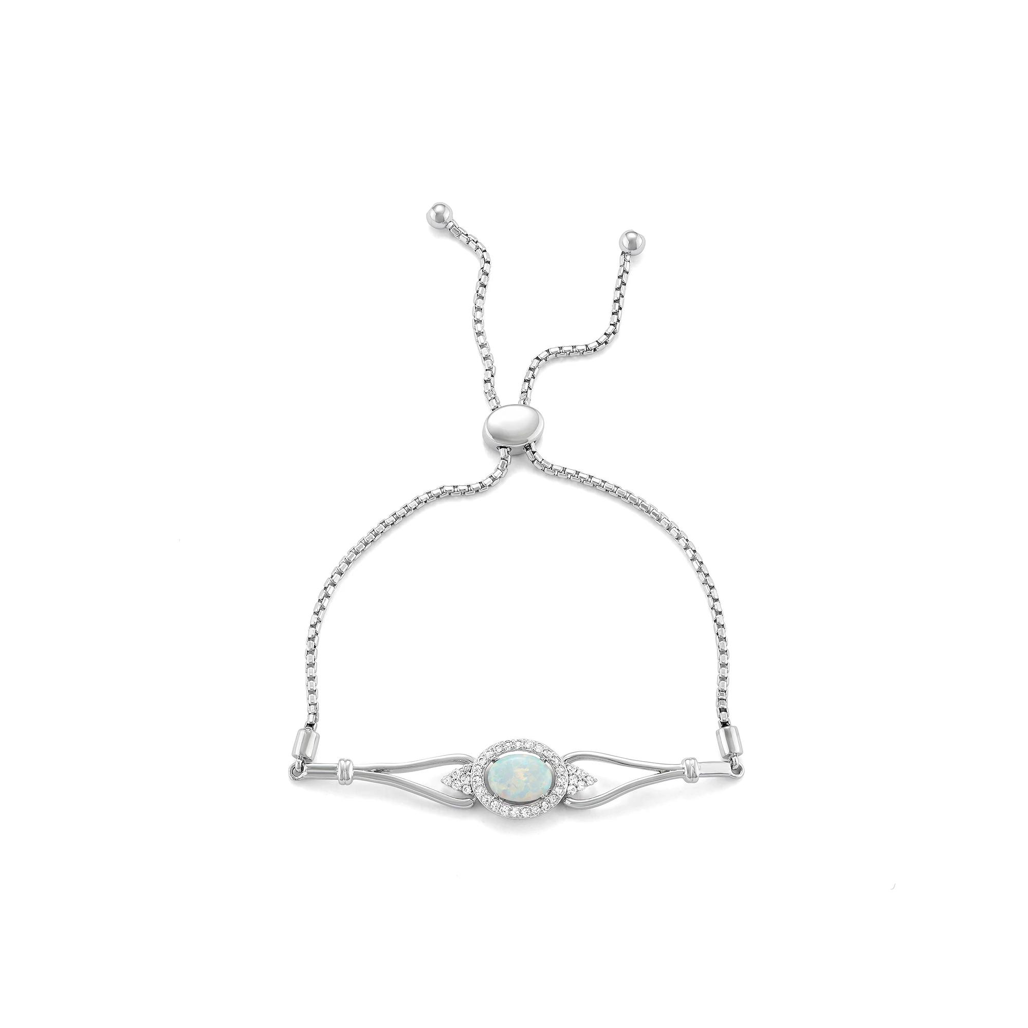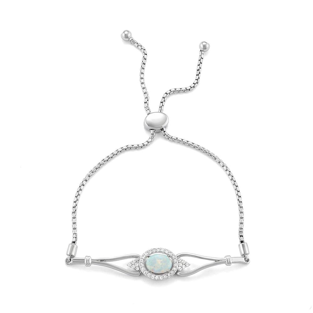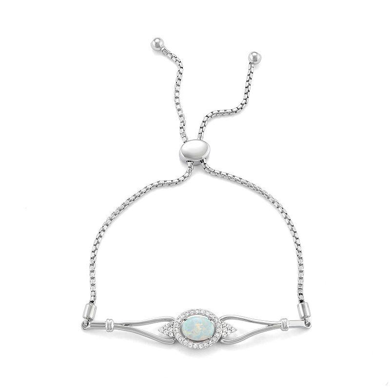 Add style to your look with this Sterling Silver Lab-Created Opal & Lab-Created White Sapphire Bolo Bracelet. Click on this JEWELRY & WATCHES GUIDE to learn about fit, styles, materials and more! Add style to your look with this Sterling Silver Lab-Created Opal & Lab-Created White Sapphire Bolo Bracelet. Click on this JEWELRY & WATCHES GUIDE to learn about fit, styles, materials and more! FEATURES Length: 9 in. Clasp: bolo Nickel safe Metal: sterling silver Plating: rhodium Finish: polished Packaging: boxedSTONE DETAILS Stone type: lab-created opal, lab-created white sapphire Total weight: 7/8 ct. Center stone weight: 1/2 ct. Center stone: 8 mm x 6 mm Shape: oval, round Setting: pave, prong Gemstones may have been treated to enhance their appearance. Special care may be required. Please visit our Gemstone Treatment & Special Care Guide for more information. Size: 9. Gender: female. Age Group: adult.
