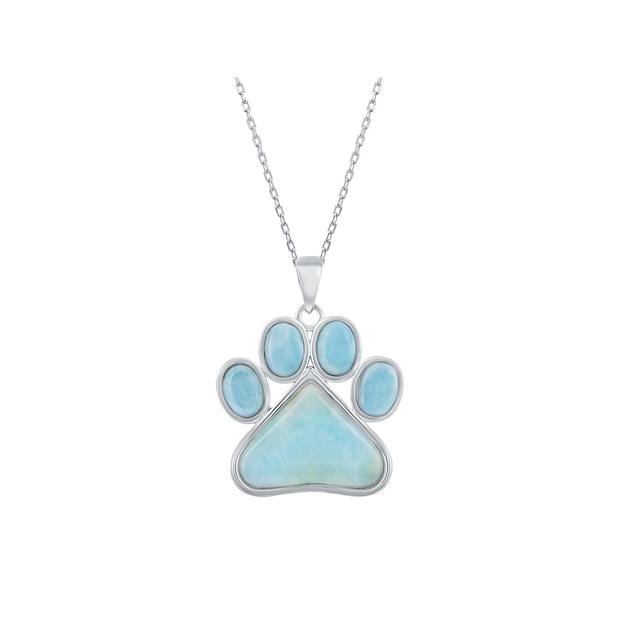 Showcase you love of man's best friend with this larimar paw print pendant.NECKLACE DETAILSLength: 18 in. Clasp: spring-ringMetal: sterling silverPlating: rhodiumAdditional details: larimar inlayPackaging: boxedGemstones may have been treated to enhance their appearance. Special care may be required. Size: 18". Color: Blue. Gender: female. Age Group: adult.