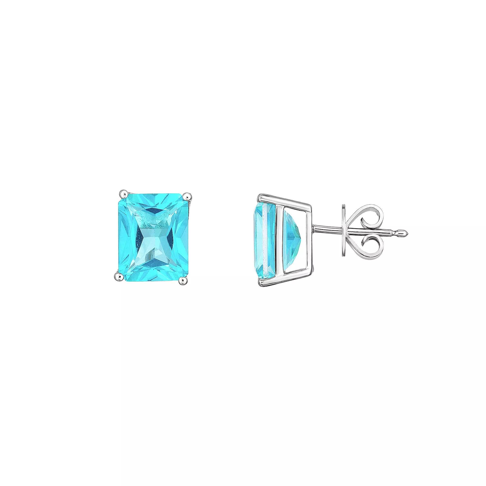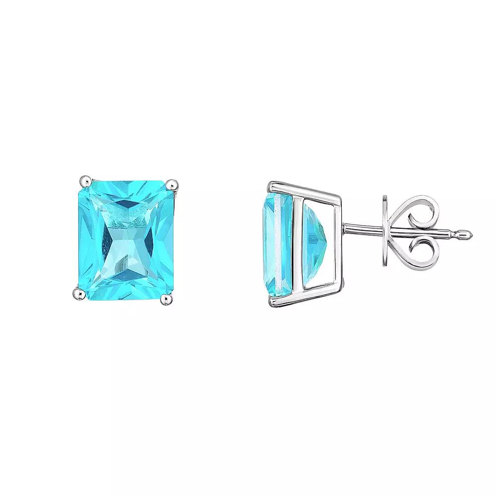 Featuring Paraiba Mystic Topaz gemstones, these sterling silver studs add a colorful touch to your wardrobe. Click on this JEWELRY & WATCHES GUIDE to learn about fit, styles, materials and more! Featuring Paraiba Mystic Topaz gemstones, these sterling silver studs add a colorful touch to your wardrobe. Click on this JEWELRY & WATCHES GUIDE to learn about fit, styles, materials and more! FEATURES Dimensions: 10 mm x 8 mm x 17 mm Backings: post Metal: sterling silver Plating: rhodium Finish: polished Packaging: boxedSTONE DETAILS Stone type: Paraiba Mystic Topaz Center stone size: 10 mm x 8 mm Shape: emerald cut Setting: prong Gemstones may have been treated to enhance their appearance. Special care may be required. Please visit our Gemstone Treatment & Special Care Guide for more information. Please note, due to the high value of this item, a signature may be required upon delivery. Color: Blue. Gender: female. Age Group: adult.