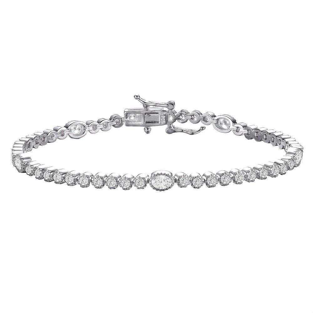 Vesatile and classically stylish, this cubic zirconia tennis bracelet can be worn with any outfit. Vesatile and classically stylish, this cubic zirconia tennis bracelet can be worn with any outfit. Length: 7 in. Nickel free Metal: sterling silver Plating: rhodium Finish: polished Packaging: boxedSTONE DETAILS Stone type: cubic zirconia Total weight: 2 1/2 ct. Shape: oval, round Setting: bezel Gemstones may have been treated to enhance their appearance. Special care may be required. Please visit our Gemstone Treatment & Special Care Guide for more information. Please note, due to the high value of this item, a signature may be required upon delivery. Size: 7.25". Color: White. Gender: female. Age Group: adult.