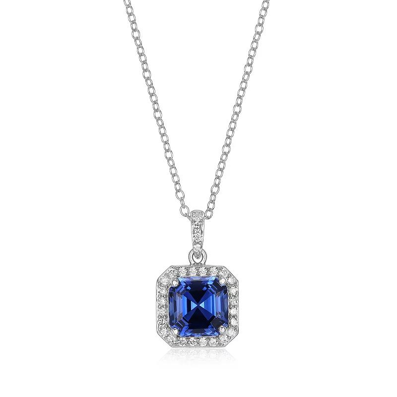 Perfectly compliment your look with this elegant Rhodium Plated Sterling Silver Sapphire Lab-Grown Diamond Pendant Necklace. Click on this JEWELRY & WATCHES GUIDE to learn about fit, styles, materials and more! Perfectly compliment your look with this elegant Rhodium Plated Sterling Silver Sapphire Lab-Grown Diamond Pendant Necklace. Click on this JEWELRY & WATCHES GUIDE to learn about fit, styles, materials and more! FEATURES 0.67 x 0.42 Chain length: 18 in. + 2-in. extender Chain type: cable Clasp: spring-ring Nickel safe Metal: sterling silver Plating: rhodium Finish: polished Packaging: boxed ImportedSTONE DETAILS Stone type: lab-created sapphire Total weight: 2 1/10 ct. Center stone weight: 2 1/10 ct. 8 x 8 Shape: asscher cut, Shape: square Setting: prongDIAMOND DETAILS Total weight: 1/4 ct. Color grade: G, H Clarity: SI1, SI2 Shape: round Setting: pave Diamond weights are approximate. Diamond Total Weights may vary between .01 and .13 ct. Some diamonds consist of fewer than 17 facets. Gemstones may have been treated to enhance their appearance. Special care may be required. Please visit our Gemstone Treatment & Special Care Guide for more information. Size: 18-20 ADJ. Gender: female. Age Group: adult.