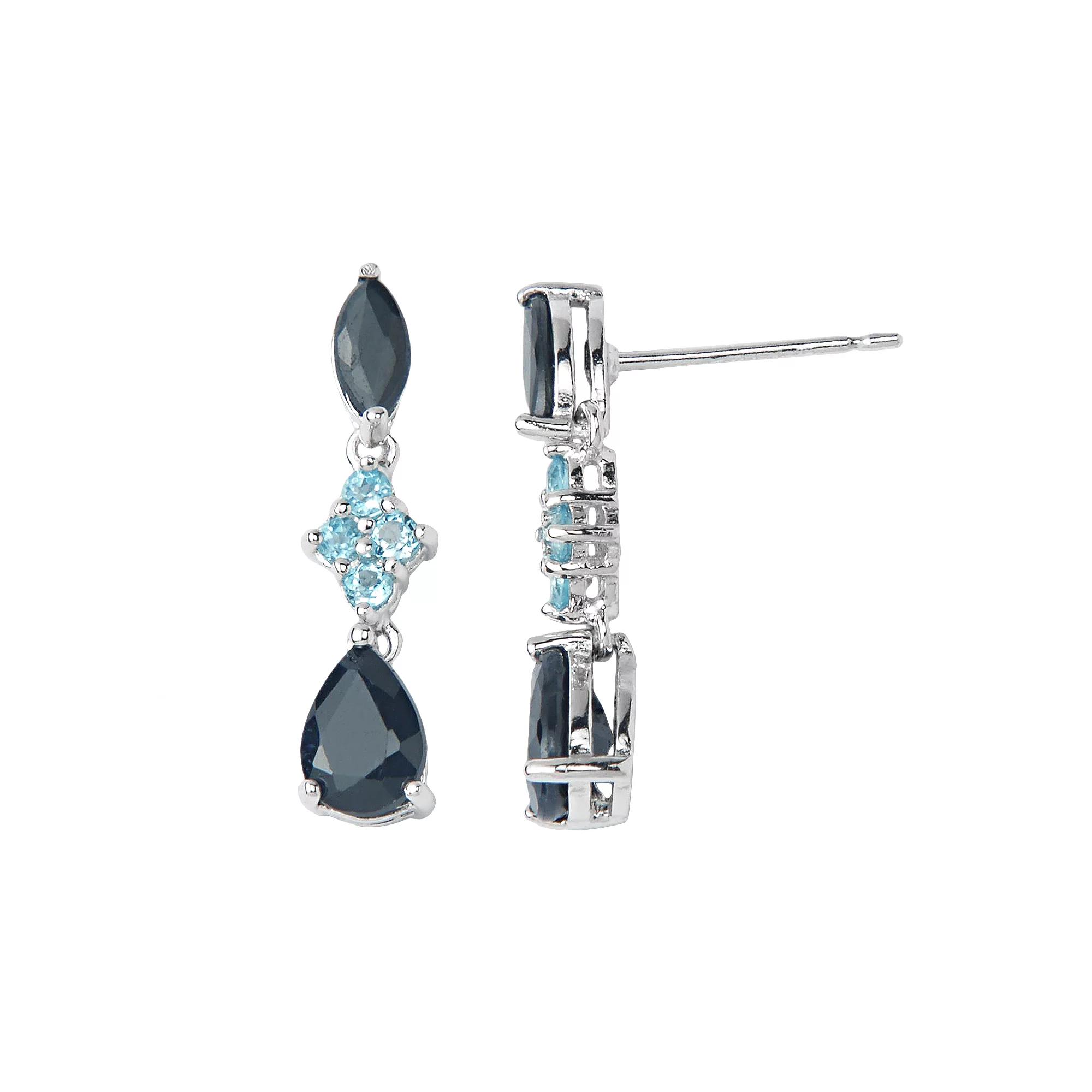 Rhodium-plated sterling silver construction provides amazing luster. Details: 9/10-in. length Pierced Post backings Rhodium-plated sterling silver Certain promotions and price discounts may not apply to online-exclusive items. Size: One Size. Color: Blue. Gender: female. Age Group: adult.