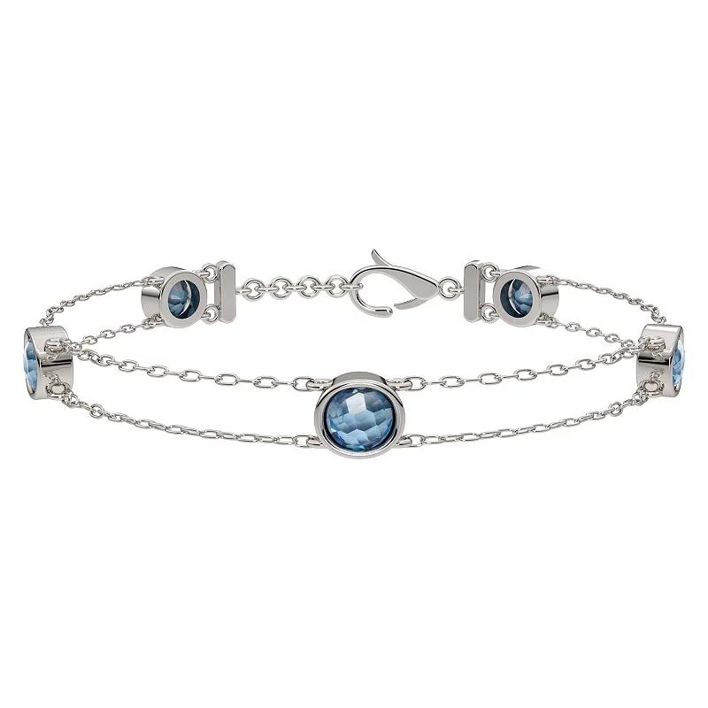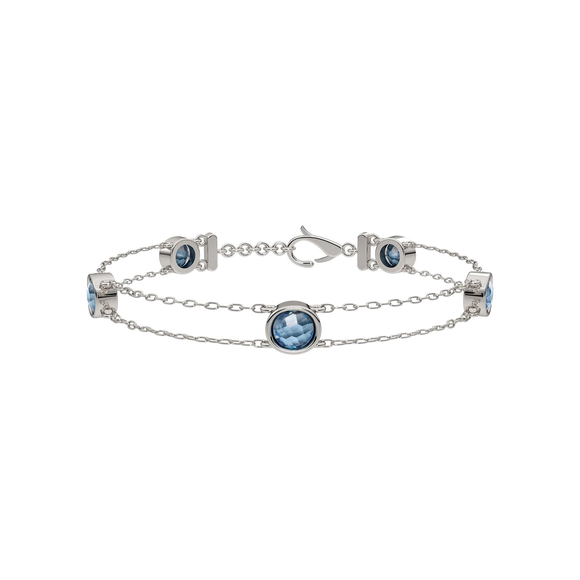 Adorned with sparkling Swiss blue topaz, this shining sterling silver bracelet is a dainty accessory youll love. Adorned with sparkling Swiss blue topaz, this shining sterling silver bracelet is a dainty accessory youll love. BRACELET DETAILS Length: 7.25 in. Clasp: lobster-claw Metal: sterling silver Plating: rhodium Finish: polished Packaging: boxedSTONE DETAILS Stone type: Swiss blue topaz Total weight: 1/2 ct. Shape: round Setting: bezel Gemstones may have been treated to enhance their appearance. Special care may be required. Please visit our Gemstone Treatment & Special Care Guide for more information. Please note, due to the high value of this item, a signature may be required upon delivery. Size: One Size. Gender: female. Age Group: adult.