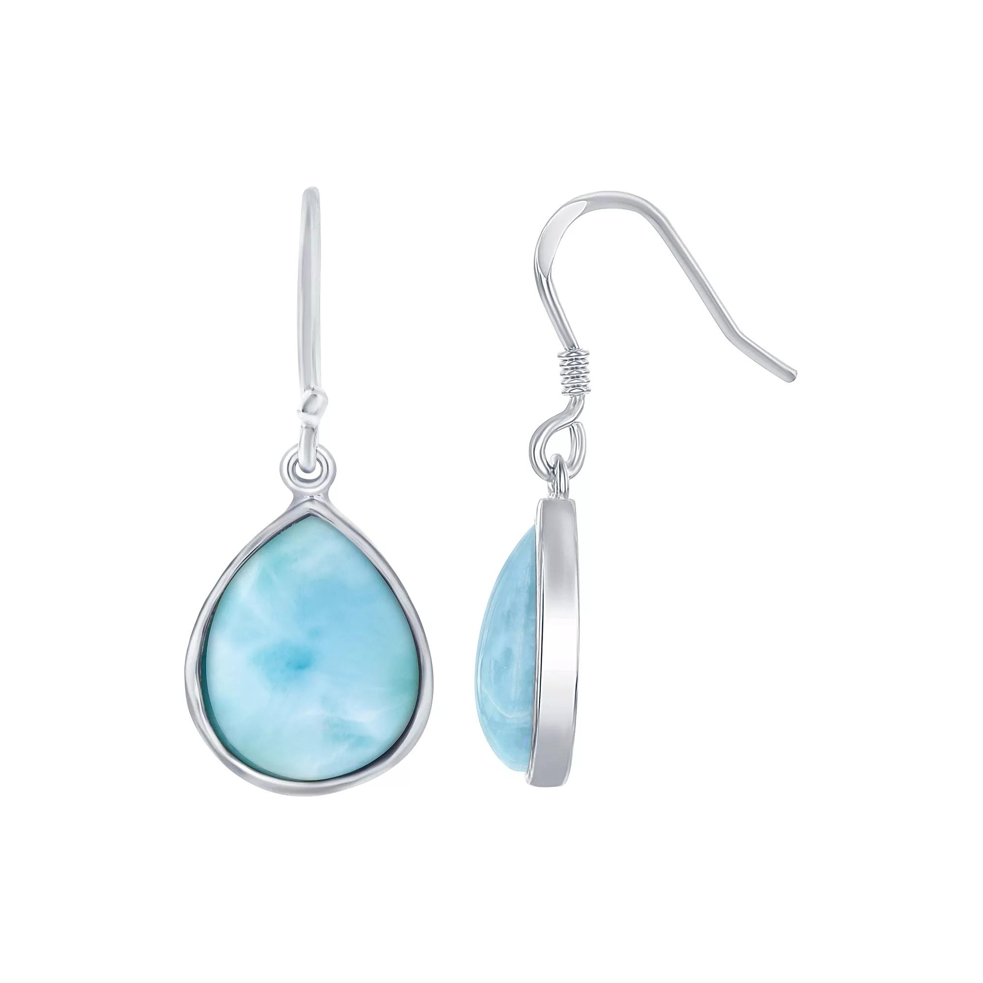 Youll love the impressive design of these beautiful earrings. Youll love the impressive design of these beautiful earrings. Backings: Frenchwire Length: 1 in Packaging: boxed Metal: sterling silver Plating: sterling silver Finish: polished Additional details: nickel free STONE DETAILS Type: larimar natural stone Total weight: 5 ct. Shape: pear Setting: bezel Size: One Size. Color: Blue. Gender: female. Age Group: adult.