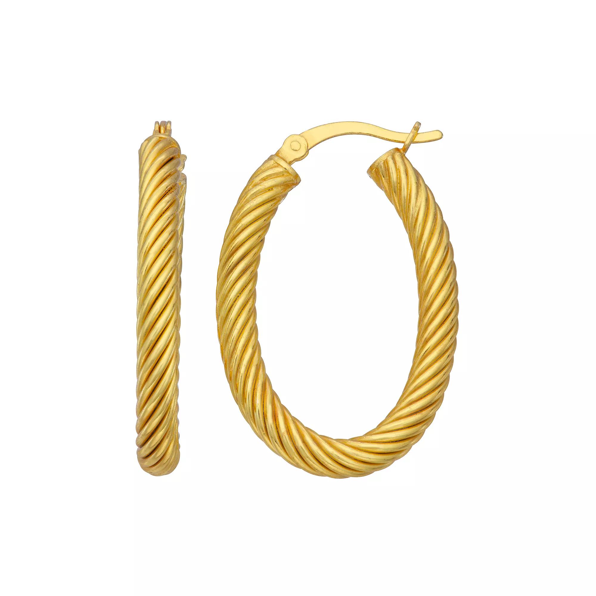 These versatile twist hoop earrings are a fun take on a classic piece and can be dressed up or down depending on your mood. Nickel free Metal: sterling silver Backings: click-it Packaging: boxed Finish: textured Length: 32 mm Size: One Size. Color: Gold. Gender: female. Age Group: adult. Material: Gold Over Sterling.