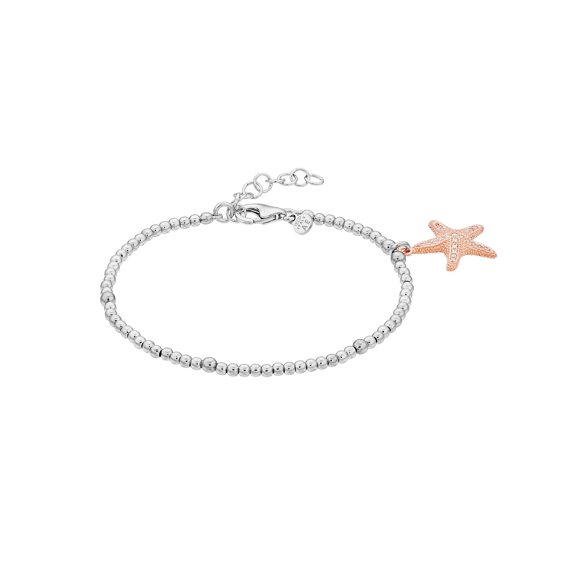 A rose-gold tone starfish charm, decorated with cubic zirconia accents, makes this sterling silver beaded bracelet a lovely, beachy accessory. A rose-gold tone starfish charm, decorated with cubic zirconia accents, makes this sterling silver beaded bracelet a lovely, beachy accessory. BRACELET DETAILS Starfish charm with cubic zirconia accents Length: 8 in. Clasp: lobster-claw Plating: silver & rose gold tone Finishes: polished & textured Nickel free Packaging: boxed Gemstones may have been treated to enhance their appearance. Special care may be required. Image(s) may be enlarged to show detail. Size: 7". Color: Grey. Gender: female. Age Group: adult.