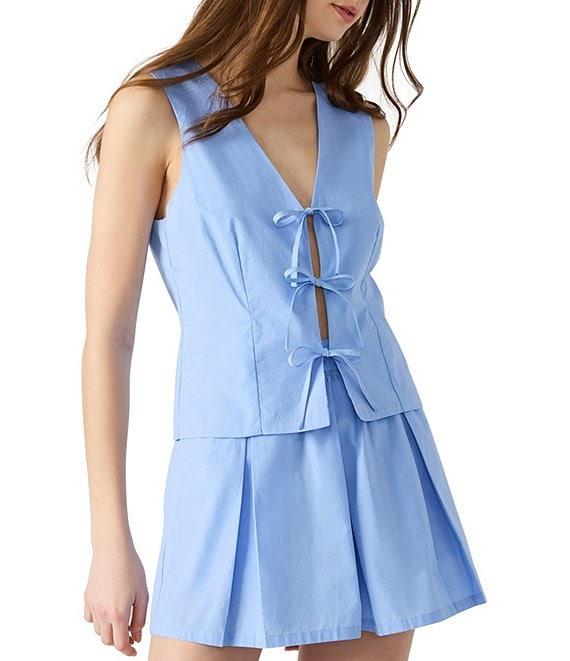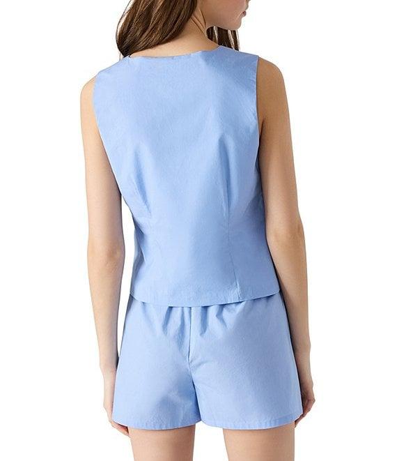Steve Madden Alizza V-Neck Sleeveless Tie-Front Coordinating Poplin Vest