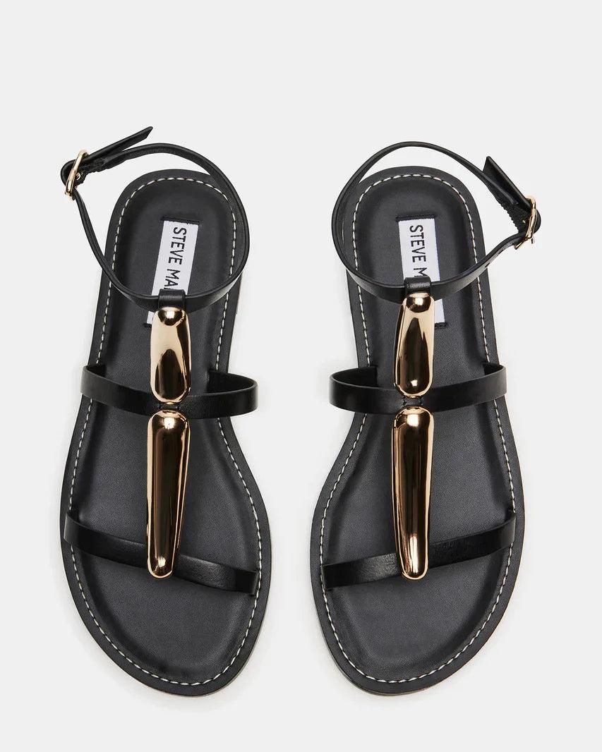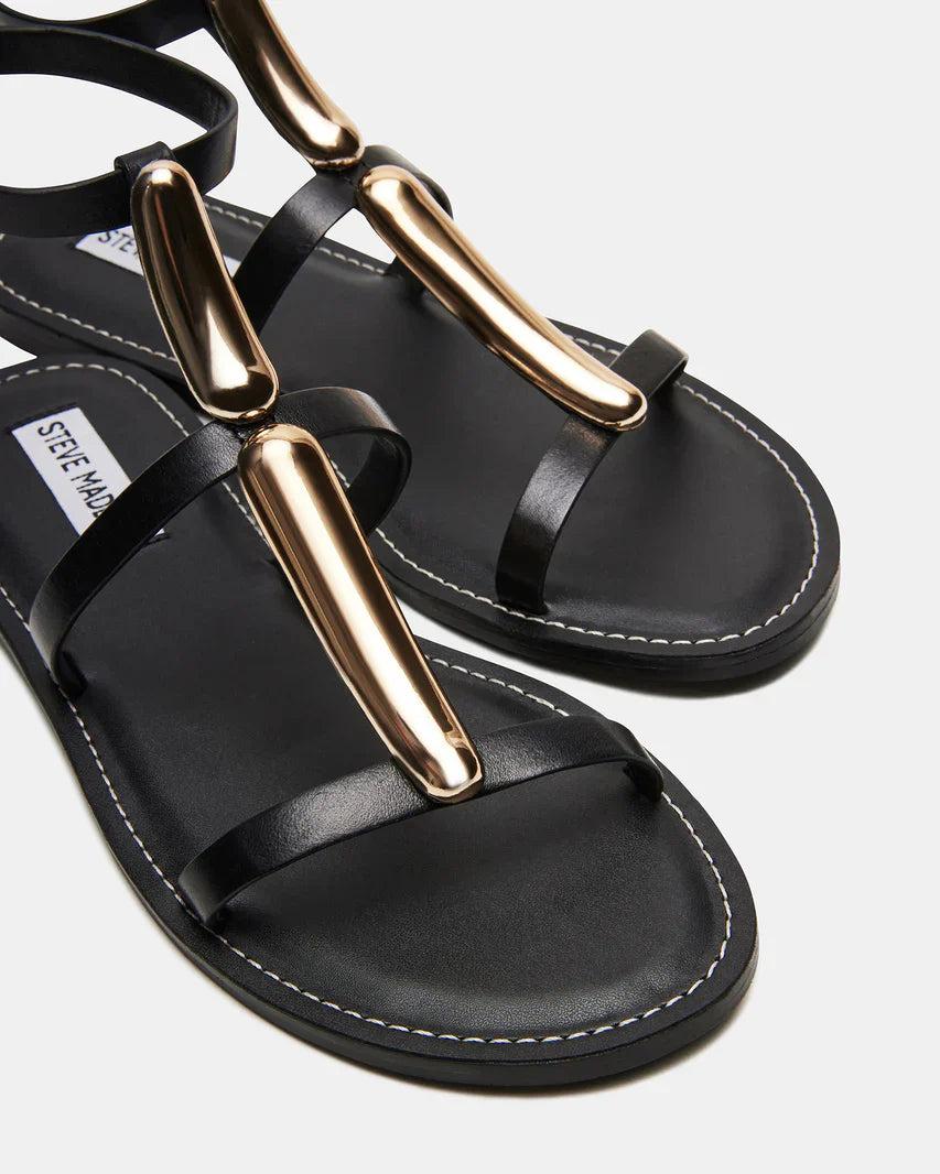 Skillfully designed, the ALMA showcases a chic strappy look complemented by elegant gold details. These versatile flat sandals provide both fashion and ease, making them a must-have for any wardrobe. Enhance your shoe collection with these refined and enduring sandals.