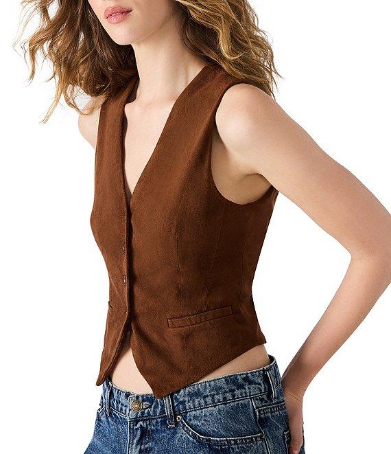 Steve Madden Barrett Faux Suede V-Neck Sleeveless Button Front Vest