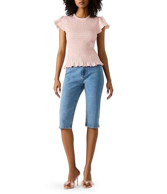 Steve Madden Cecilie Crew Neck Short Sleeve Smocked Peplum Top