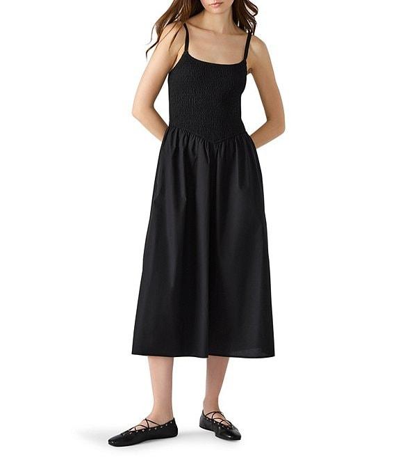 Steve Madden Codie Square Neck Smocked Midi Dress