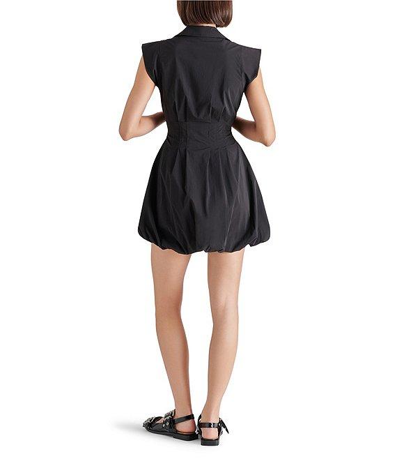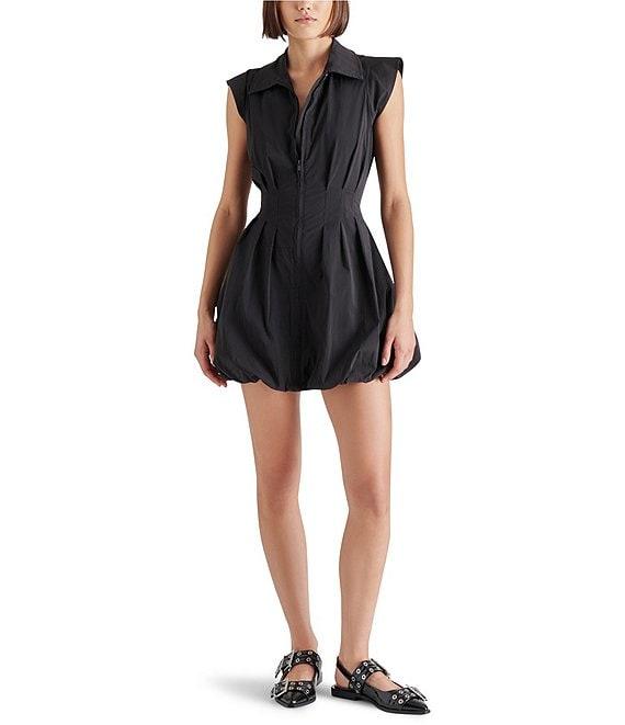 Steve Madden Dyanne Point Collar Neck Cap Sleeve Zip Front Bubble Hem Mini Dress