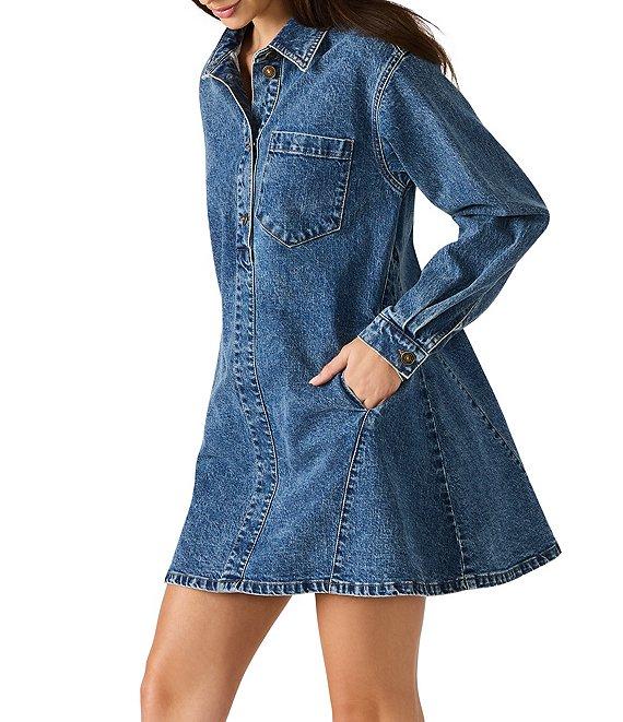 Steve Madden Edith Collard Long Sleeve Denim Mini Shirt Dress