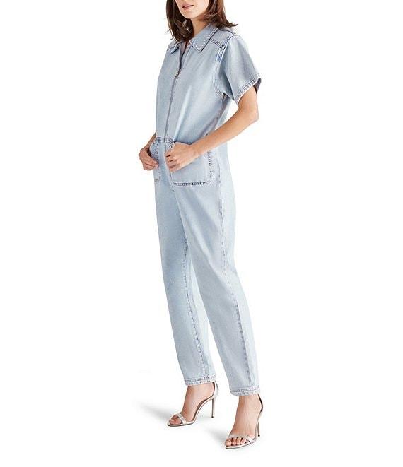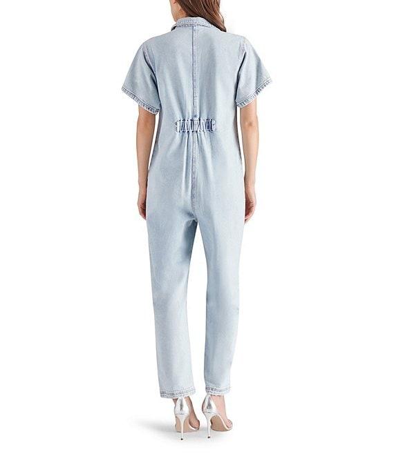 Steve Madden Eira Collared Zip Short Sleeve Denim Jumpsuit