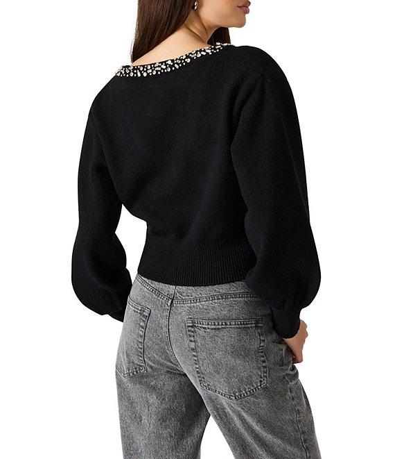 Steve Madden Evilyn Embellished V-Neck Long Sleeve Cropped Sweater