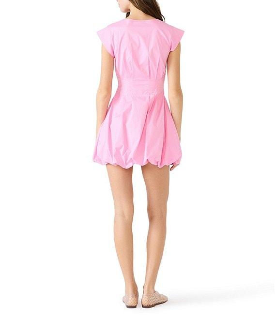 Steve Madden Gale V-Neck Cap Sleeve Bubble Hem Poplin Mini Dress