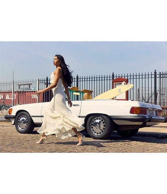 From Steve Madden, this dress features: Lace fabrication V-neckline Sleeveless Slip silhouette Lined Zip back closure Approx. 58.5" in length from high point bodice Nylon/rayon Machine wash/tumble dry Imported.