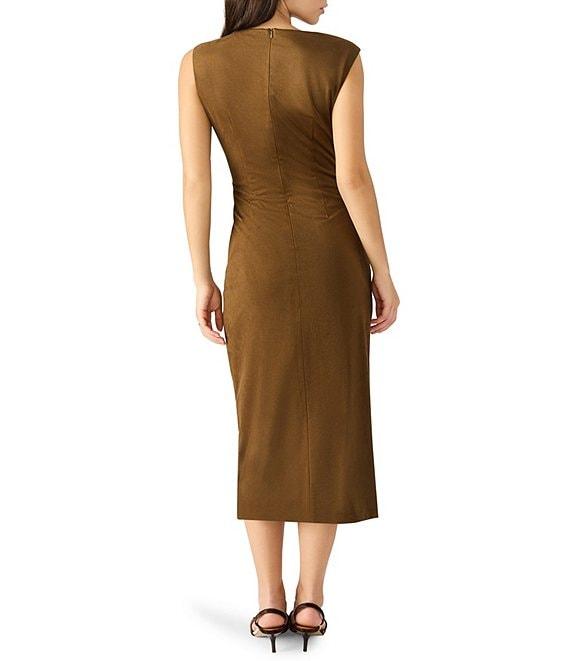 Steve Madden Keegan Crew Neck Sleeveless Ruched Knit Sheath Midi Dress