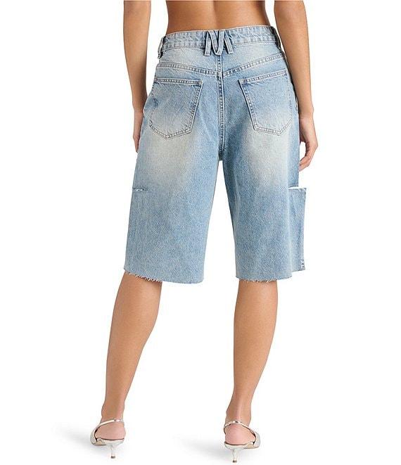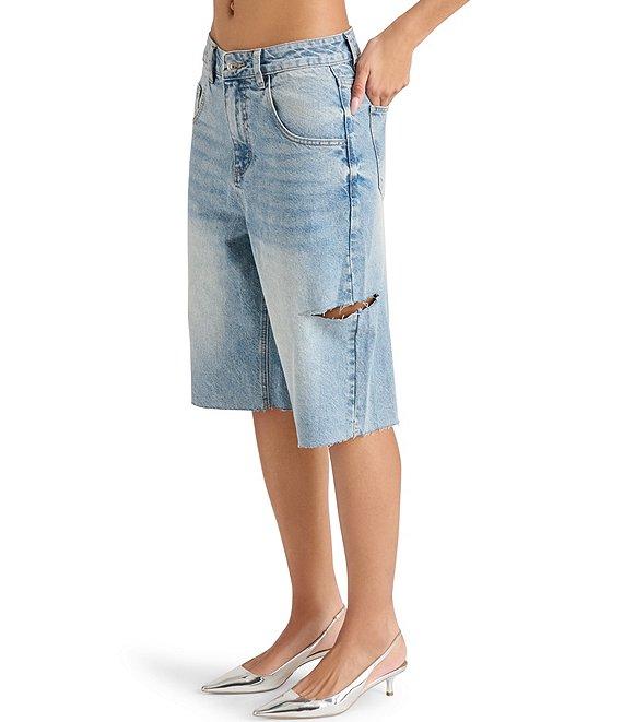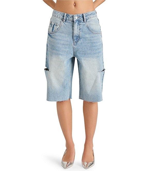 Steve Madden Lange Denim Side Slit Barrel Bermuda Shorts
