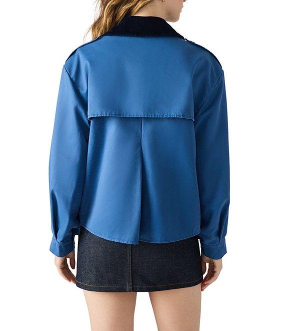 From Steve Madden, this jacket features: Oiled cloth fabrication Corduroy notch lapel collar Shoulder epaulets with snaps Back yoke storm flap Inverted back pleat Long sleeves with cuffs Side pocket with snap flap closure Concealed front snap closure Straight hemline Approx. 20.75" length Cotton/polyester Machine wash/tumble dry Imported.