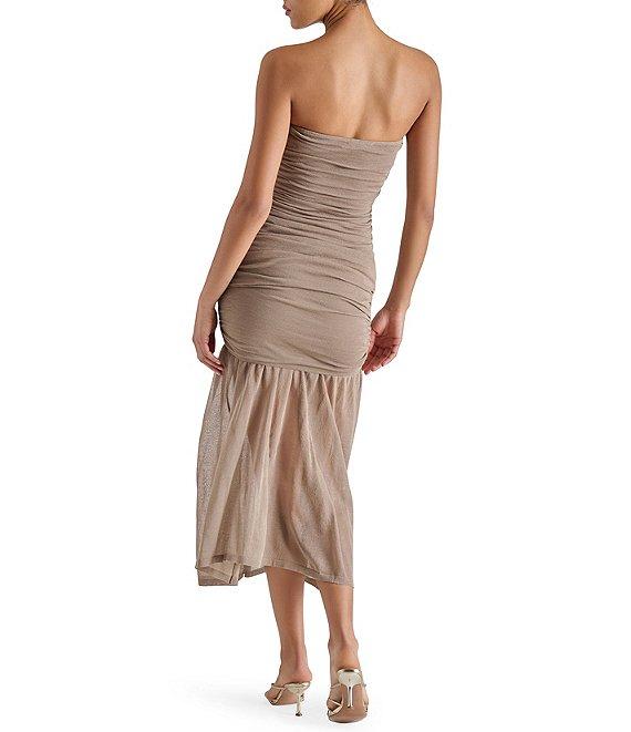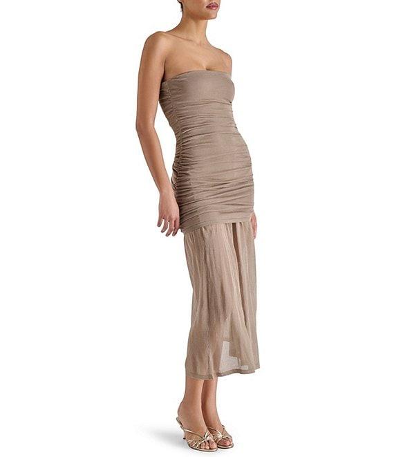 Steve Madden Lula Knit Strapless Neck Sleeveless Sheer Hem Sheath Midi Dress