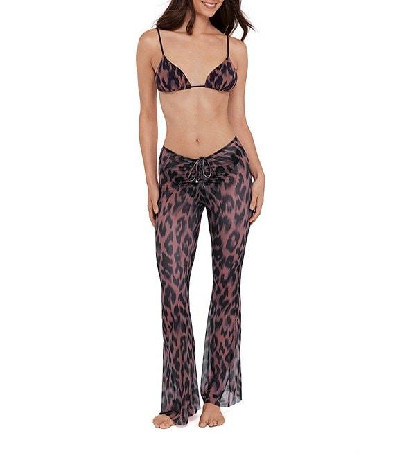From Steve Madden, this swim coverup features: Mesh fabrication Flare pant silhouette Animal print Pull on construction Nylon/spandex Hand wash Imported.