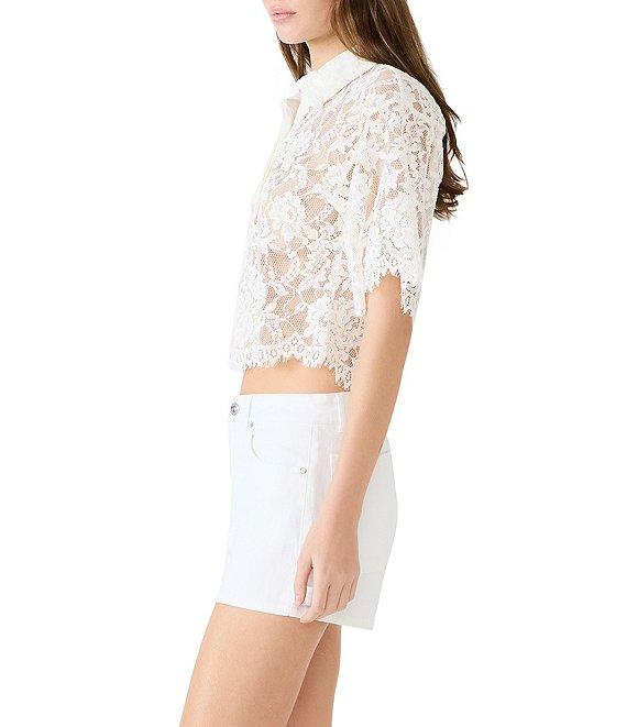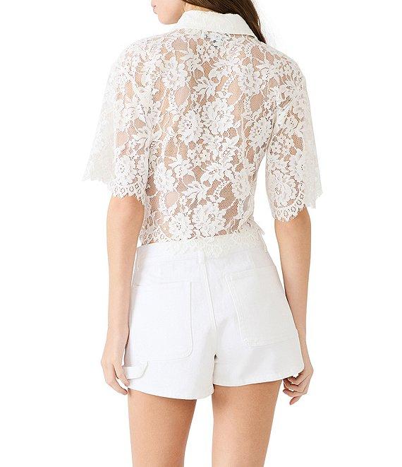 Steve Madden Monette Floral Lace Collared Short Sleeve Coordinating Top
