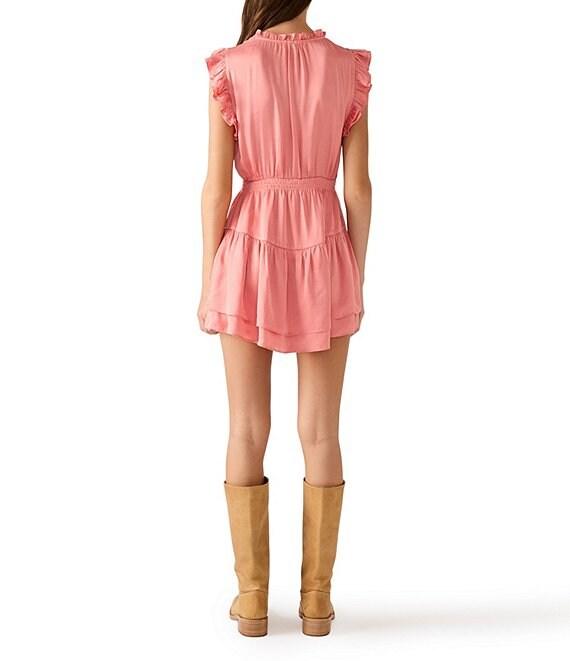 Steve Madden Prairie Dreams Satin V-Neck Ruffle Cap Sleeve Mini Blouson Dress
