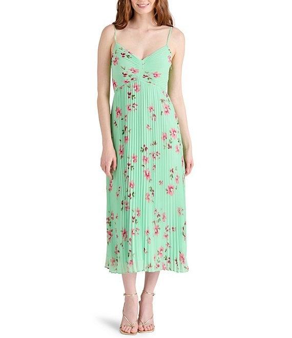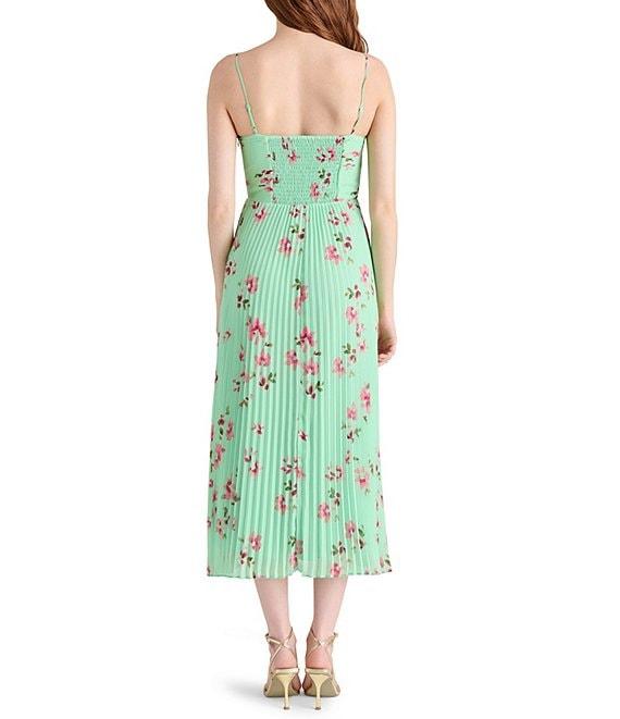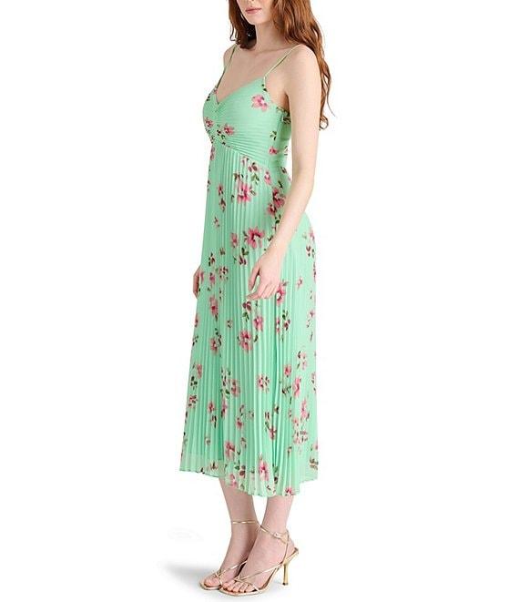 Steve Madden Ray Floral Print Sweetheart Neck Sleeveless Chiffon Pleated Midi Dress