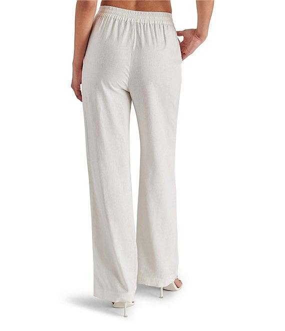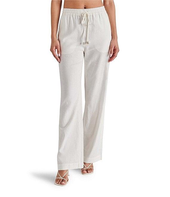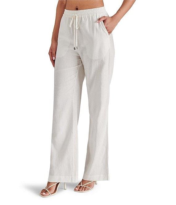 From Steve Madden, these pants feature: Linen fabrication Pull on construction Drawcord detail Side pockets detail Approx. 31" inseam, 12" front rise, 15 1/2" back rise, 21 1/2" leg opening Linen/viscose Machine wash/tumble dry Imported.