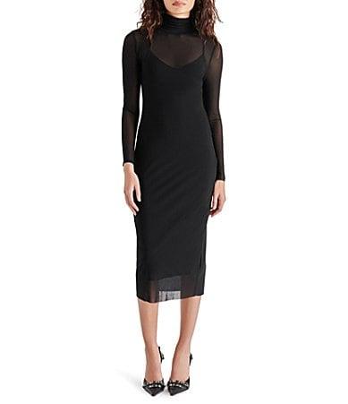 Steve Madden Vivienne Mesh Turtleneck Long Sleeve Bodycon Midi Dress