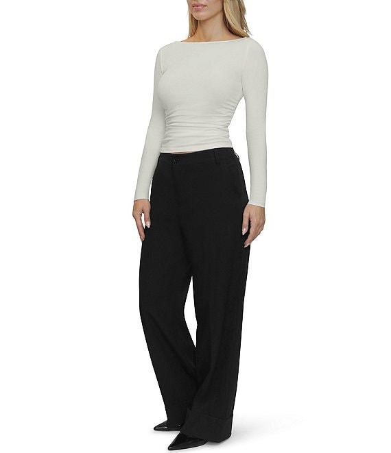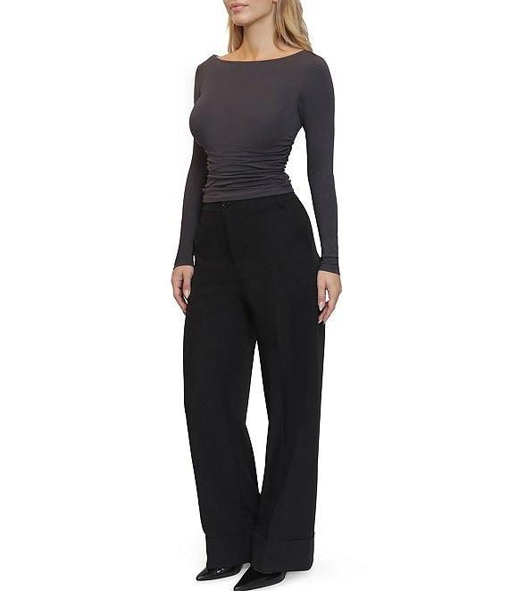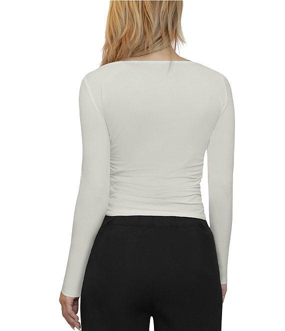 Stevie by Steve Madden Boat Neck Side Ruched Long Sleeve Top