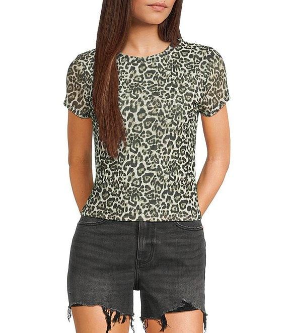 Stevie by Steve Madden Crew Neck Animal Printed Mesh T-Shirt