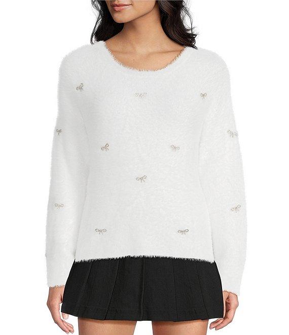 Stevie by Steve Madden Eyelash Rhinestone Bow Long Sleeve Sweater