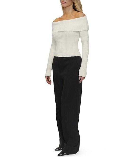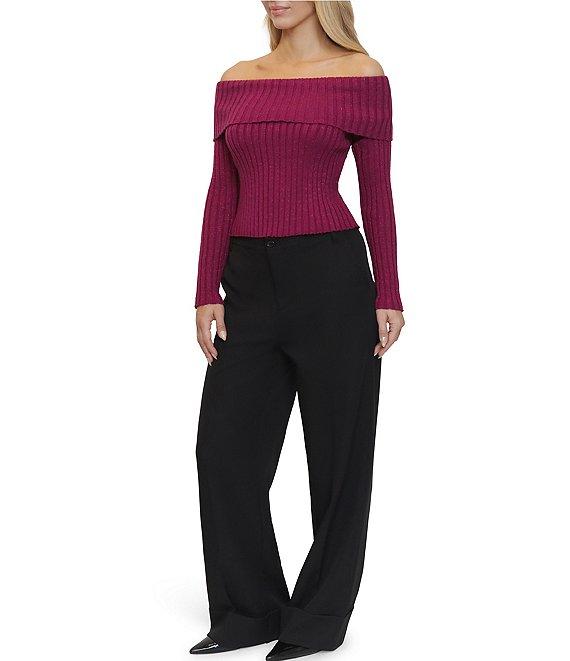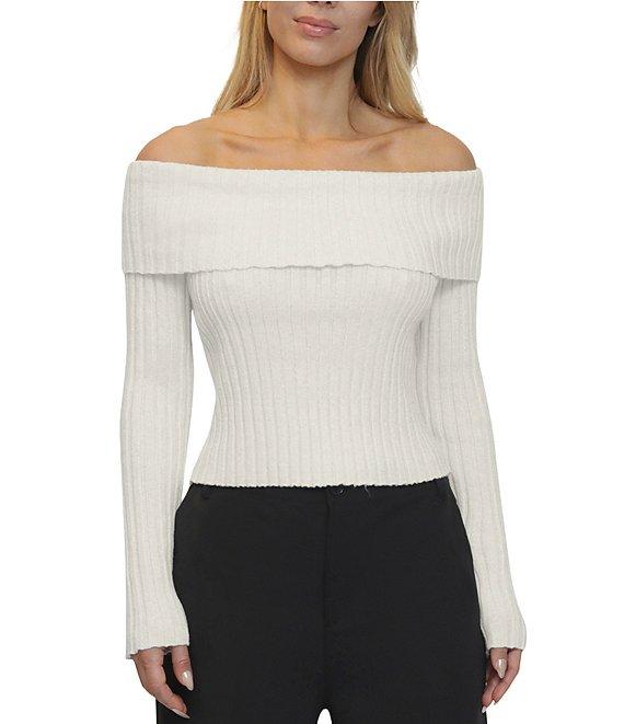 Stevie by Steve Madden Metallic Ribbed Off-The Shoulder Long Sleeve Sweater
