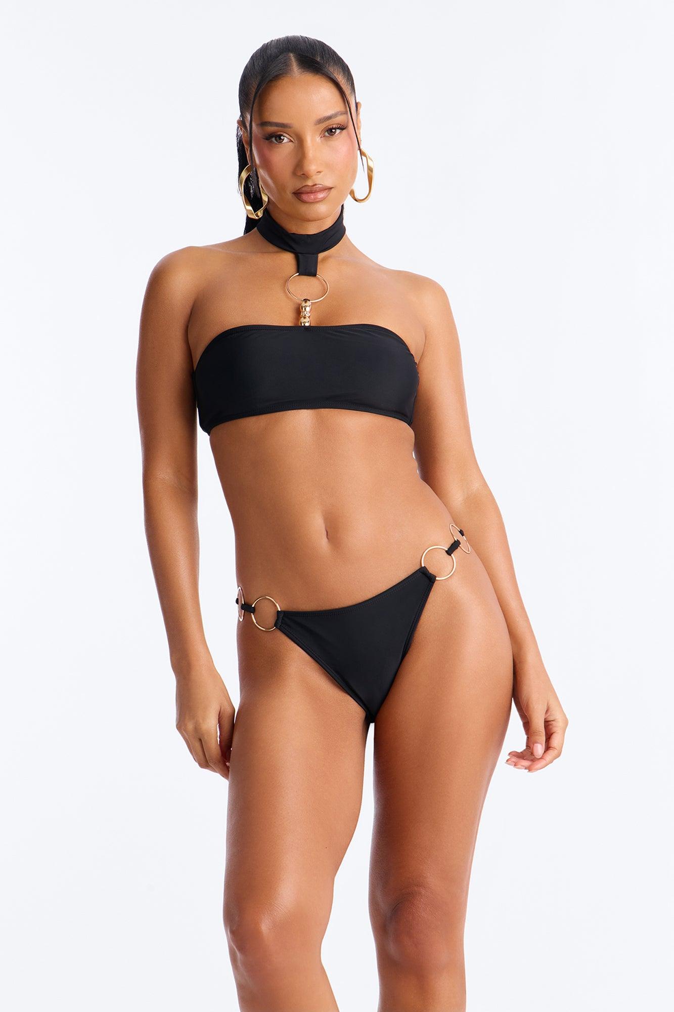 Available In Black. 2 Piece Bikini Bandeau Top Hardware Detail Final Sale Shell: 80% Nylon 20% Spandex Lining: 94% Polyester 6% Spandex Imported