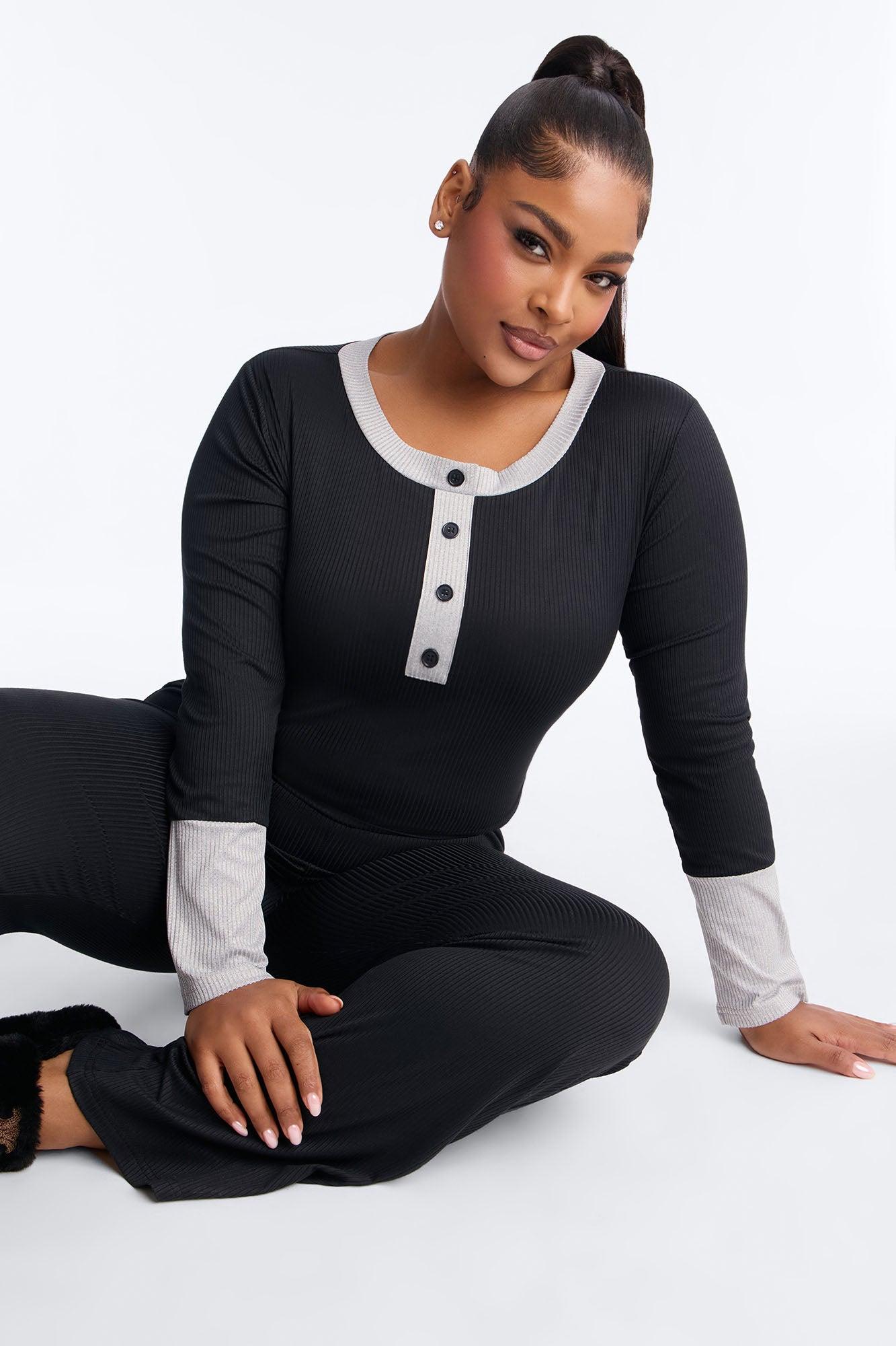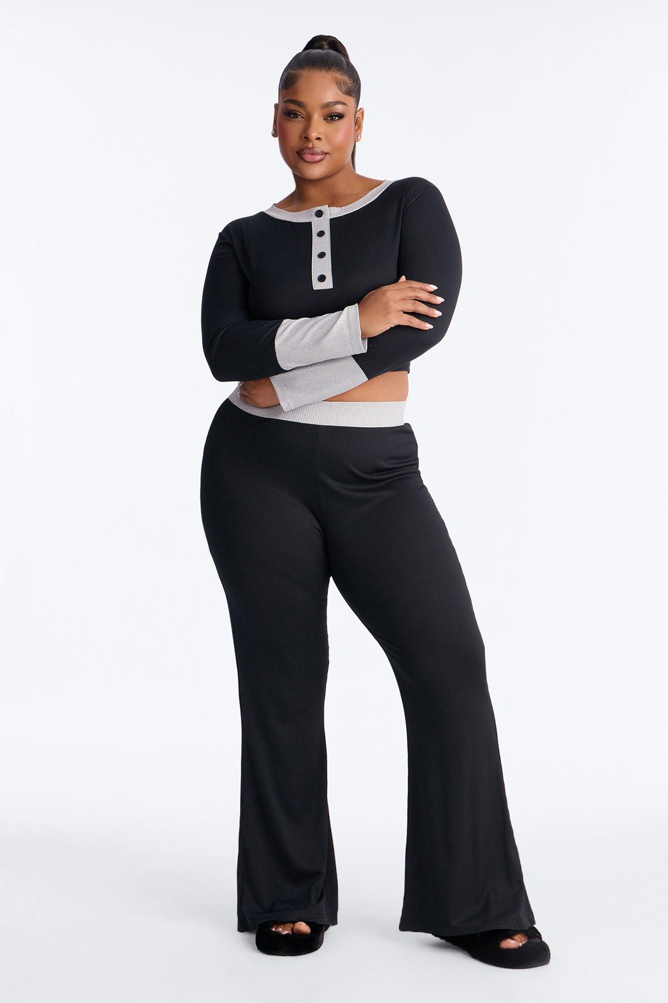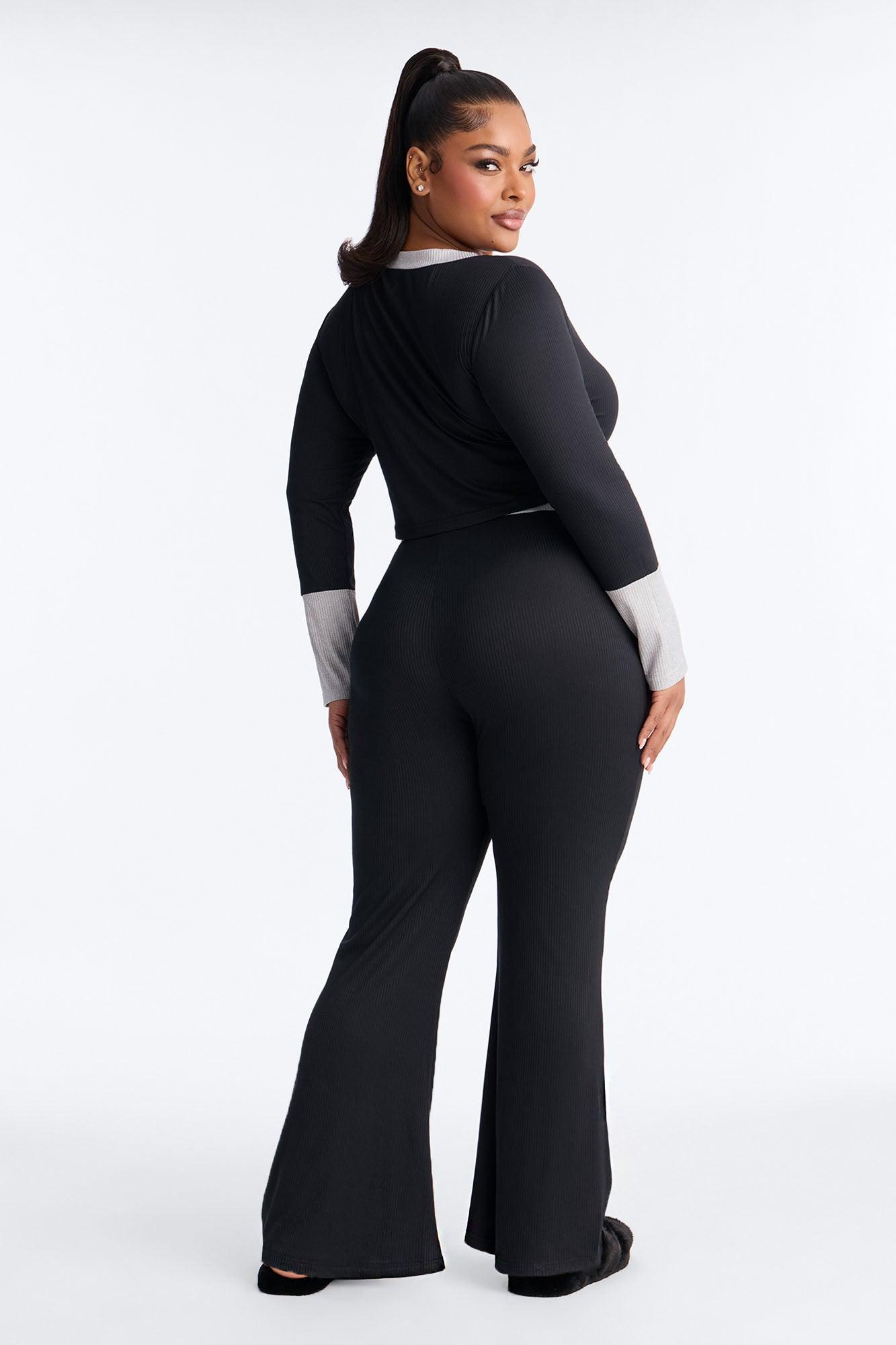 Still Napping Ribbed Long Sleeve PJ Pant Set - Black Female