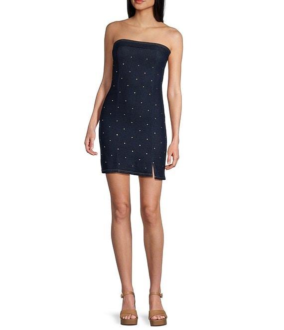 Stilletto's Bodycon Strapless Rhinestone Denim Tube Dress