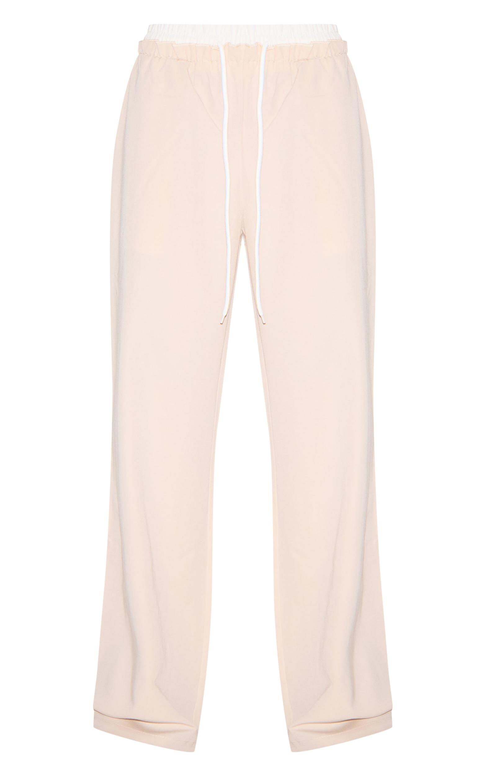 Consider these pants your new off-duty essential, reimagined. Crafted in a versatile stone hue, these relaxed fit pants feature a modern boxer-style detail at the waistline, offering a subtle nod to menswear influences. The comfortable drawstring waist ensures an adaptable fit, perfect for elevated everyday wear. Style them with a ribbed knit top and chunky sneakers for a considered weekend look, or pair with a crisp, oversized shirt and loafers for a more refined approach. For ultimate style points, team these pants with one of our structured blazers. Length approx 78cm/30.5inch (Based on a sample size UK 8) Model wears size UK 8/ EU 36/ AUS 8/ US 4Model Height - 5ft 7inchp]:!mb-4inch>Brand: PrettyLittleThingCategory: BottomsProduct type: StraightColor: StoneMaterial: Tailored WovenOccasion: Day