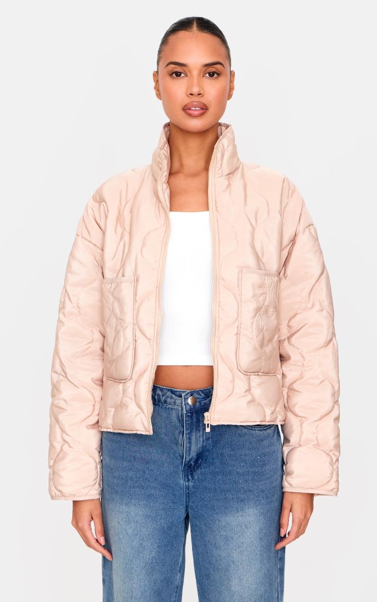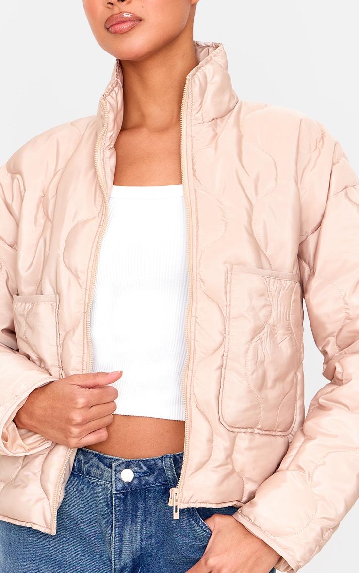 This season's outerwear reimagines functional design with an elevated edge. The stone padded wave funnel neck jacket offers a tactile take on transitional dressing. Crafted in a muted stone hue with distinctive wave quilting, this jacket features a contemporary funnel neckline and secure zip fastening. Style yours with wide-leg tailored pants for a considered daytime edit. Length approx 48cm/19inch (Based on a sample size S) Model wears size SModel Height - 5ft 9inchp]:!mb-0inch>Category: OuterwearProduct type: WindbreakerColor: StoneMaterial: ShellOccasion: Day