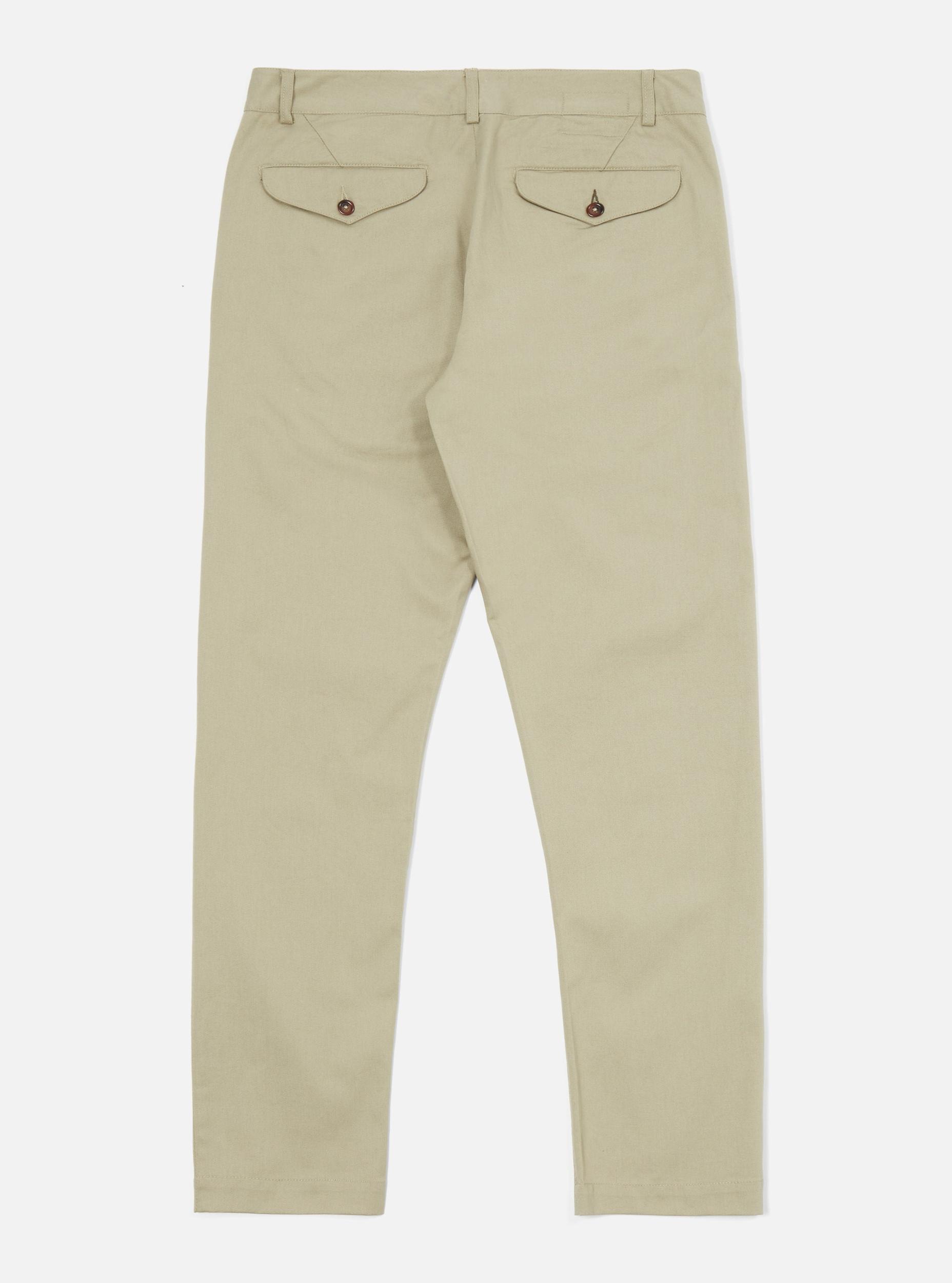 Slimish, straight-leg fit with the lowest rise of all UW. trousers. Exclusive UW Fabric; 3/1 Twill Weave. • Product Code: 00130. • Slimish, straight-leg fit. • Zip fly. • Low rise • Two front pockets. • Two rear buttoned flap pockets. • Fabric Content: 100% Cotton, 100% Cotton Trim. • Washcare: Wash at 30 degrees. Do not bleach. Do not tumble dry. Warm iron. Do not dry clean. Wash like colours together. Please be aware if purchasing as a suit, that jackets and trousers are not necessarily cut from a single piece of cloth and therefore minor variations could be possible. Exchanges can be made for any two or three pieces not pairing perfectly. [sizing] Please be aware that the measurements below are technical measurements that are based on the garment laid flat and are useful as a general guide only. You can find a trouser fitting guide on our journal here. For advice on sizing, we have a small guide available here - or alternatively, contact us if you'd like any help. Measured in Centimetres. 26" 28" 29" 30" 31" 32" 33" 34" 36" 38" Outside Leg - Inc. Waistband. 99.5 102.5 104 105.5 107 108.5 110.5 112.5 115.5 115.5 Waist. 35.5 38 39.25 40.5 41.75 43 44.25 45.5 48 50.5 Thigh - 2.5cm Below Crotch. 27.5 29 29.75 30.5 31.25 32 32.75 33.5 35 36.5 Hem Opening Width. 16 17 17.5 18 18.5 19 19.5 20 21 22 Front Rise Inc. Waistband. 25.5 26.5 27 27.5 28 28.5 29 29.5 30.5 31.5 Back Rise Inc. Waistband. 34 35 35.5 36 36.5 37 37.5 38 39 40