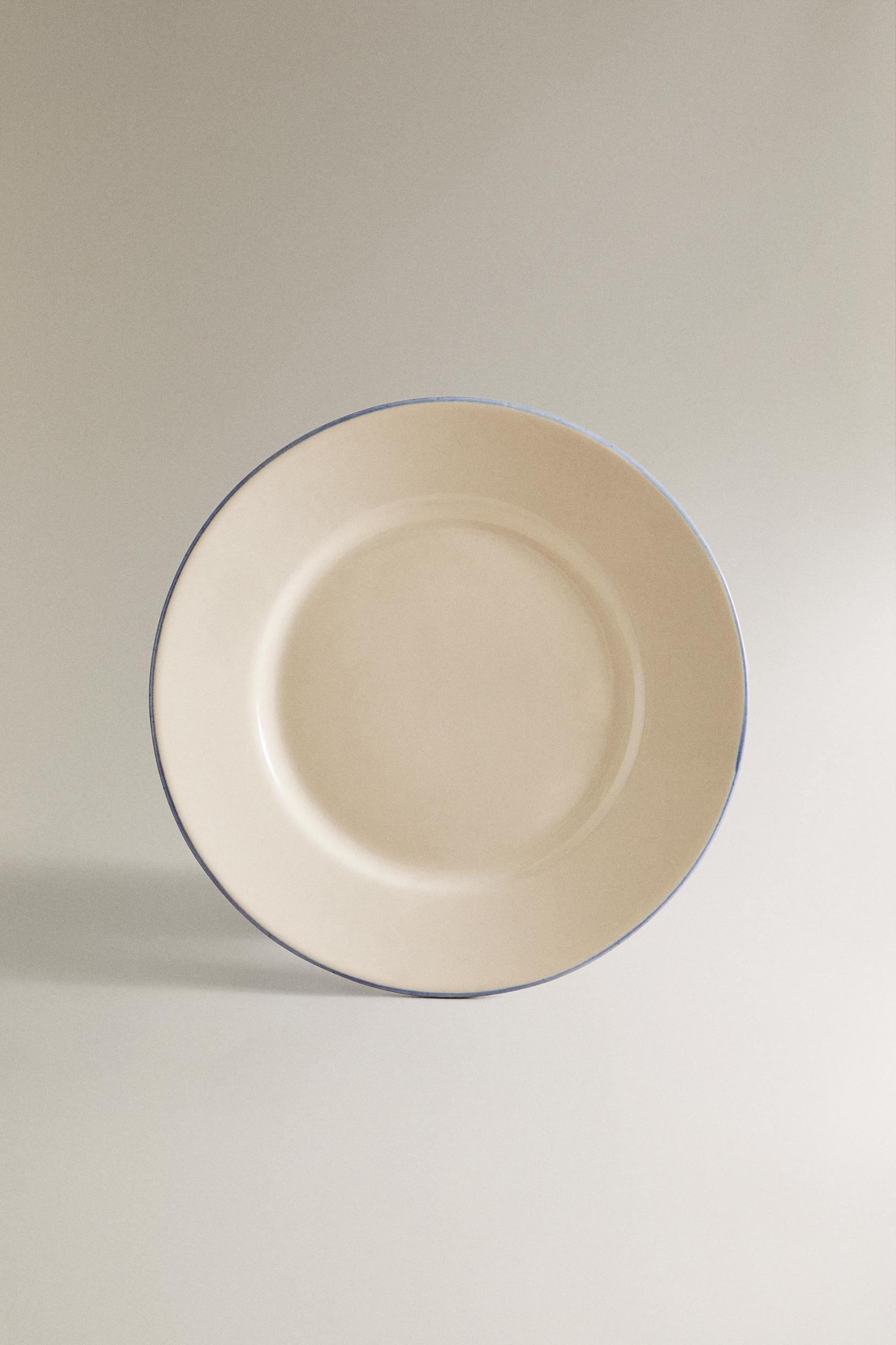 STONEWARE DESSERT PLATE WITH RIM DETAIL