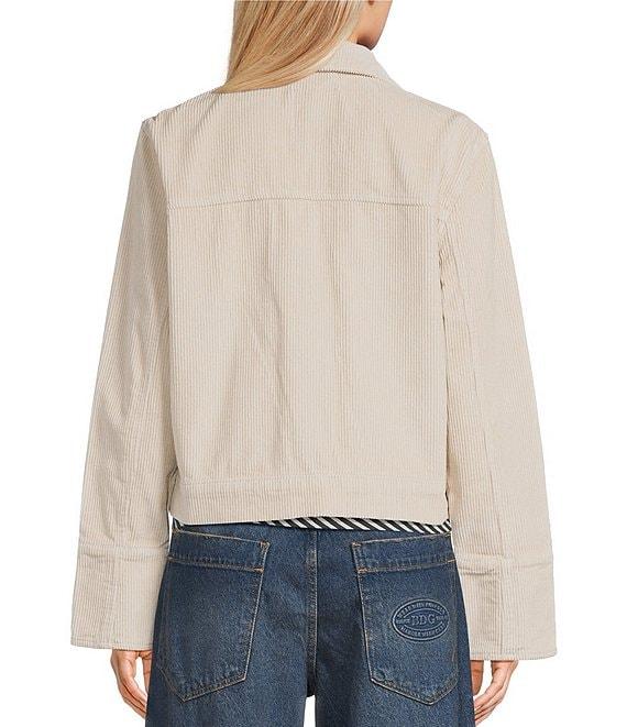 Stoosh Corduroy Collared Snap Front Flap Pocket Cropped Jacket