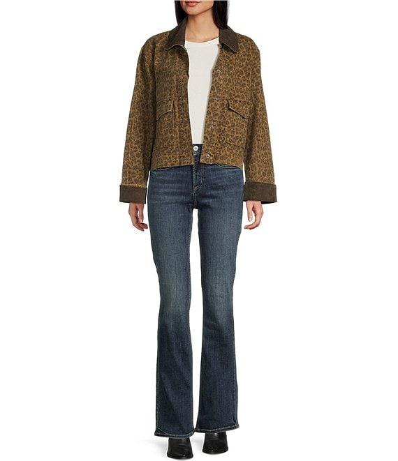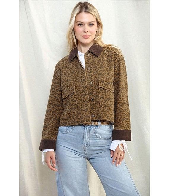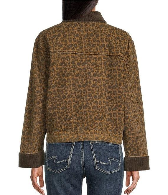 Stoosh Printed Heavy Leopard Print Twill Corduroy Collar Jacket