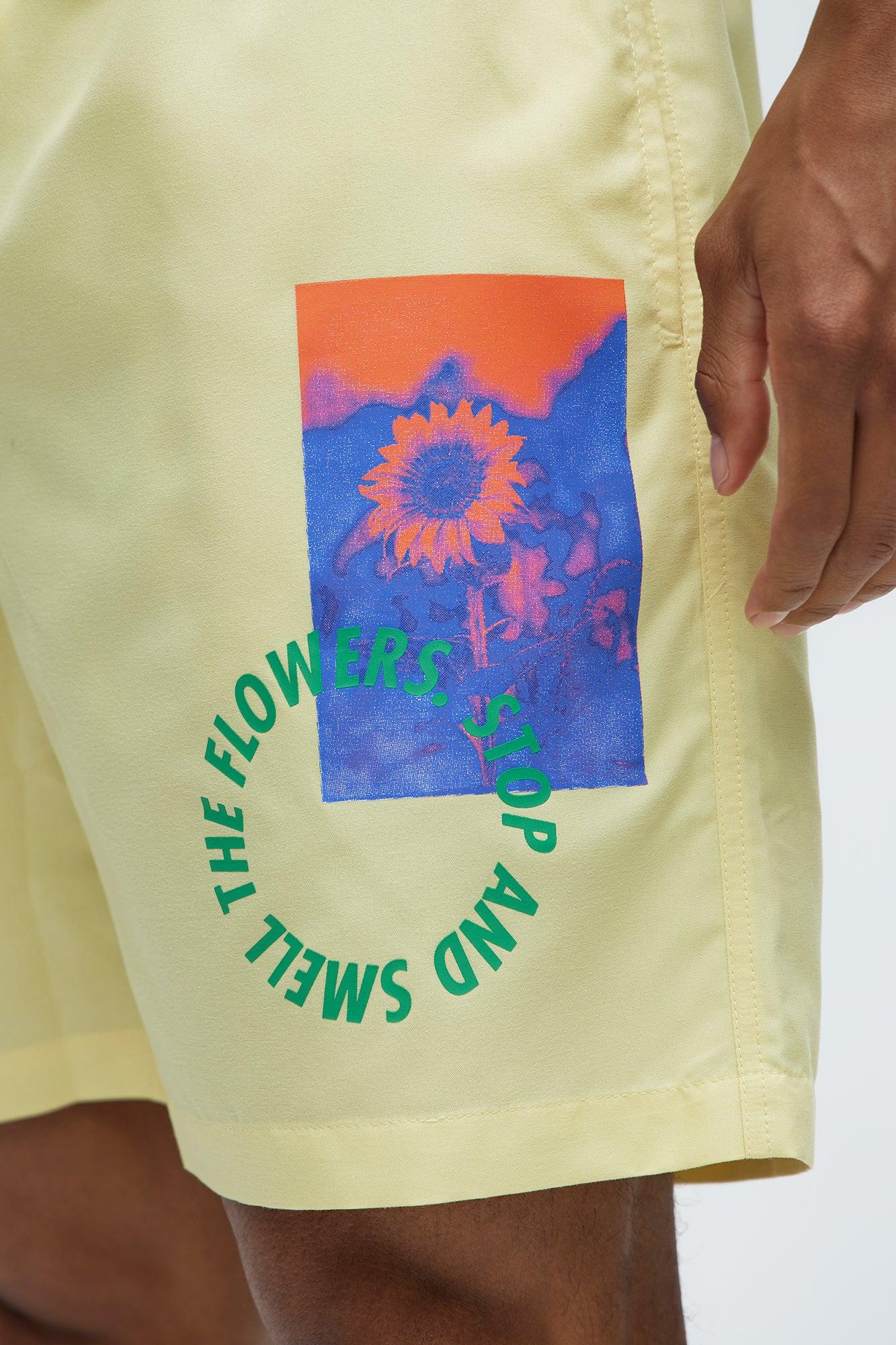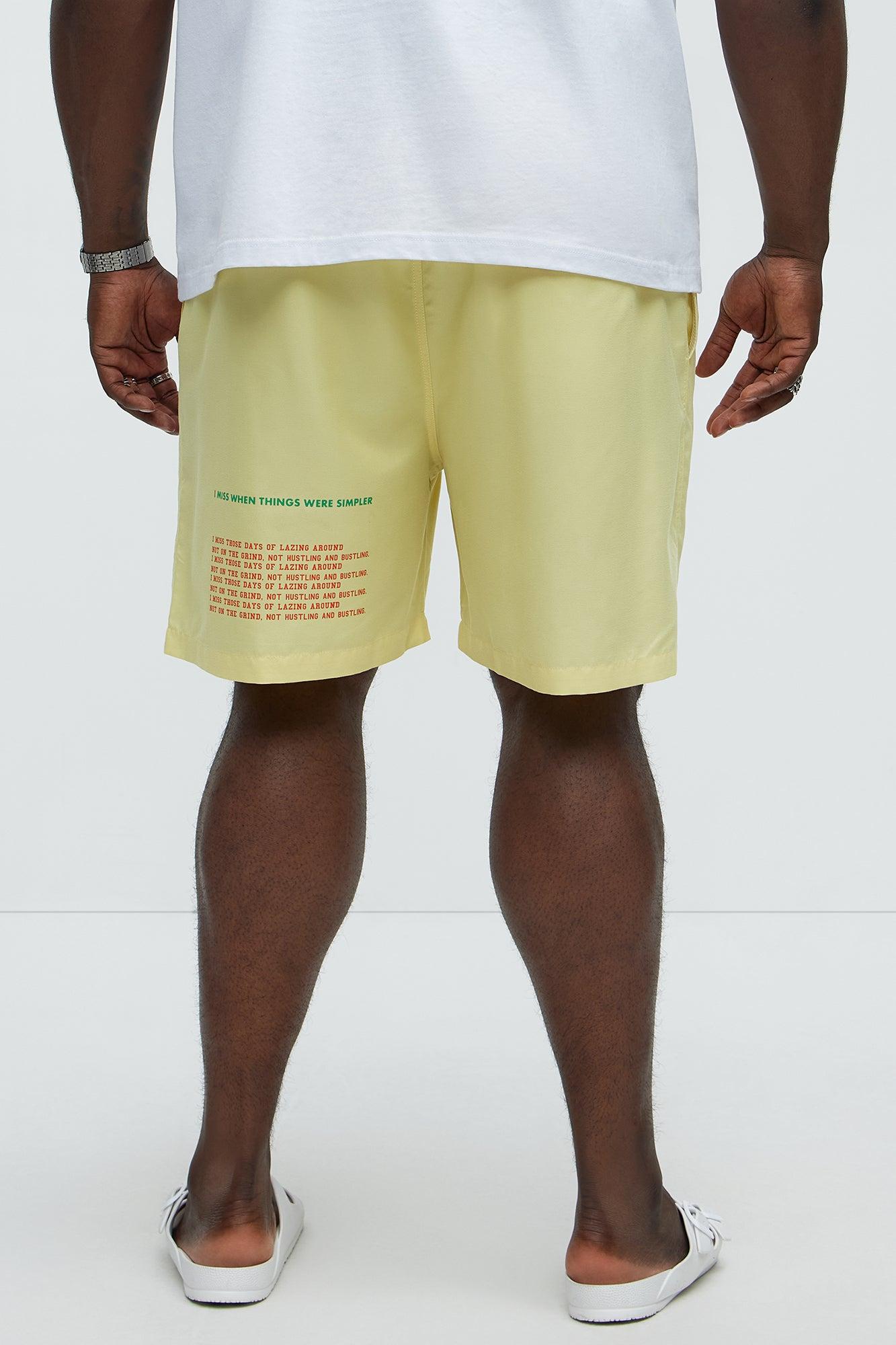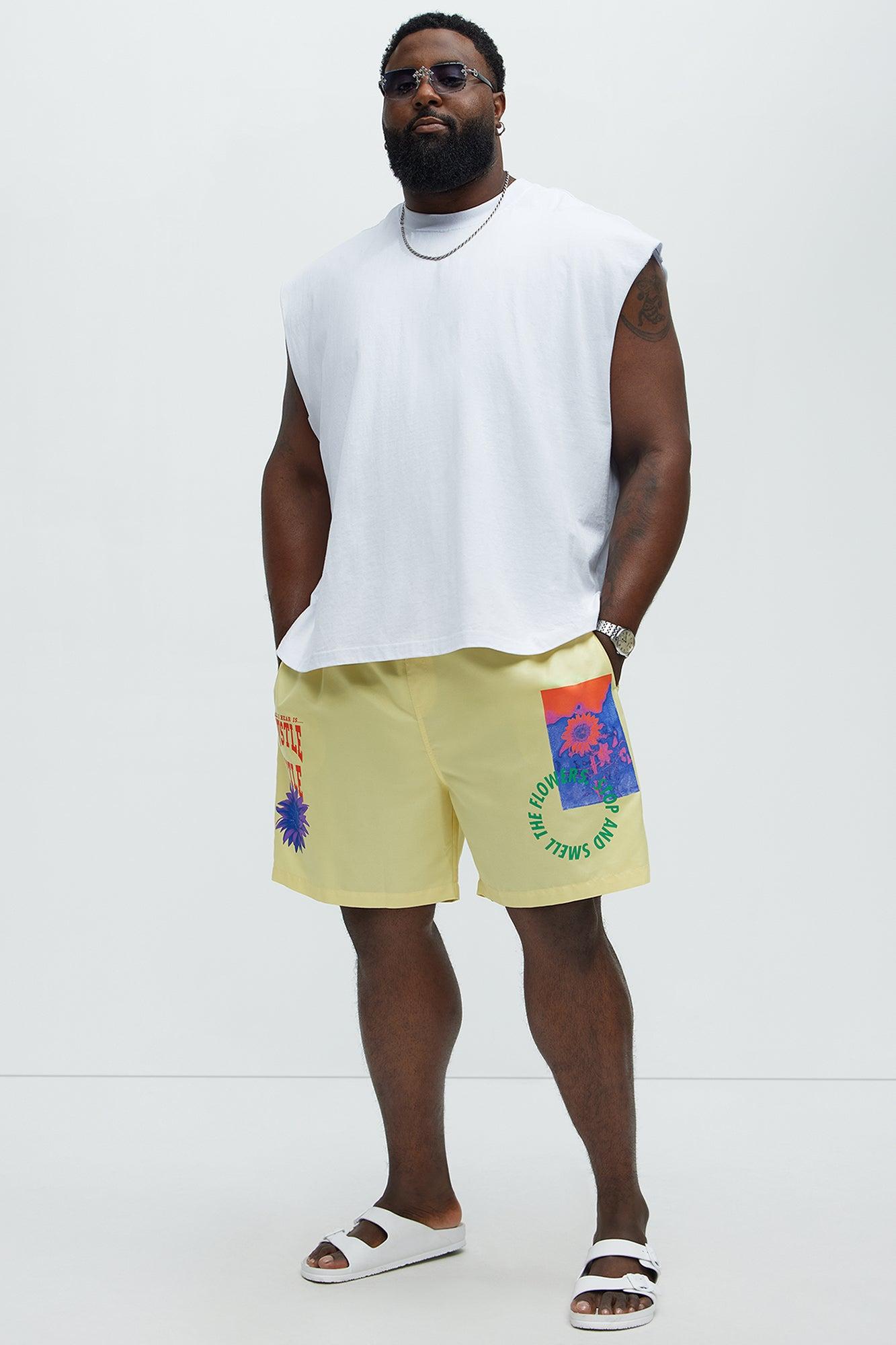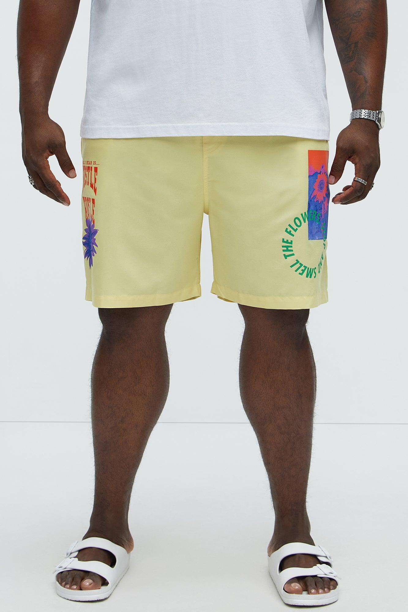 Available In Yellow. 6" Inseam Elastic Waist Drawstring Mesh Lined Front Sunflower Graphics Front "All I Hear Is Hustle" Graphic Detail Front "Stop And Smell The Flowers" Graphic Detail Side Hand Pockets Back Pocket With Velcro Closure Back "I Miss" Graphic Details "Simple Life" Back Pocket Graphic 100% Polyester Final Sale Imported